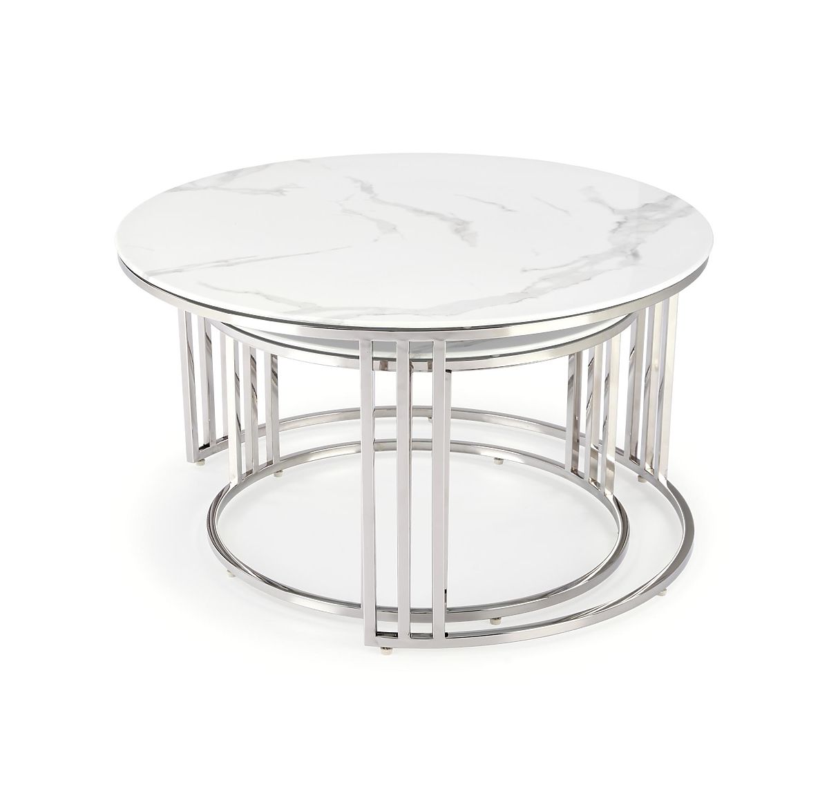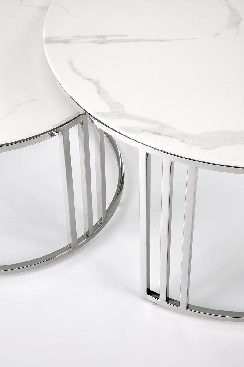 Lukahome.ro » tabele și tabele / conferință tabele / Set MERCURY 2 de 2 bănci, cadru - argintiu, sticlă - marmură albă (1p=1buc)