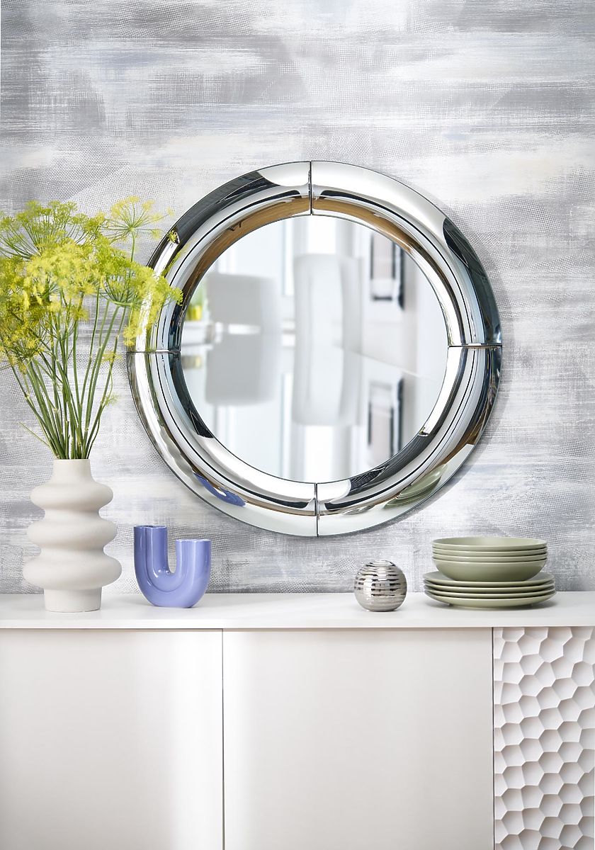 Oglindă de perete argintie cu cadru din sticlă fațetată. .. mai mult