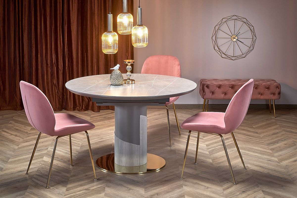 Lukahome.ro » Sufragerie și bucătărie / Mese de sufragerie / MUSCAT masă extensibilă blat - marmură gri, picior - gri deschis / auriu