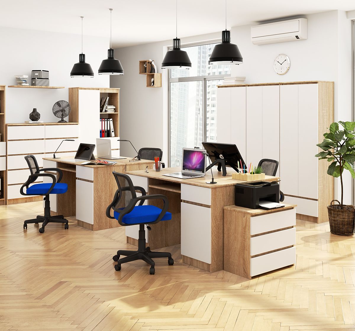 Prioritatea noastră este calitatea, execuția solidă și atenția la toate detaliile, chiar și cele mai mici. De aceea vă oferim mobilier funcțional, care se remarcă printr-o construcție durabilă și este fabricat cu grijă din placă laminată rezistentă. Materialele de înaltă calitate utilizate pentru fabricarea biroului nu sunt însă singurul său avantaj. Produsul merită atenție datorită caracterului său universal, la modă și în același timp atemporal. Simplitatea și eleganța, care nu au concurență, vor atrage cu siguranță mulți oameni.