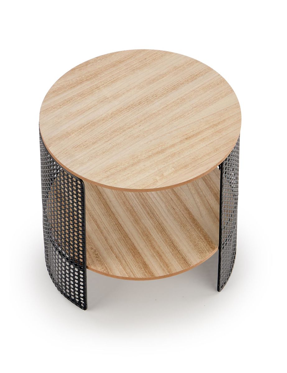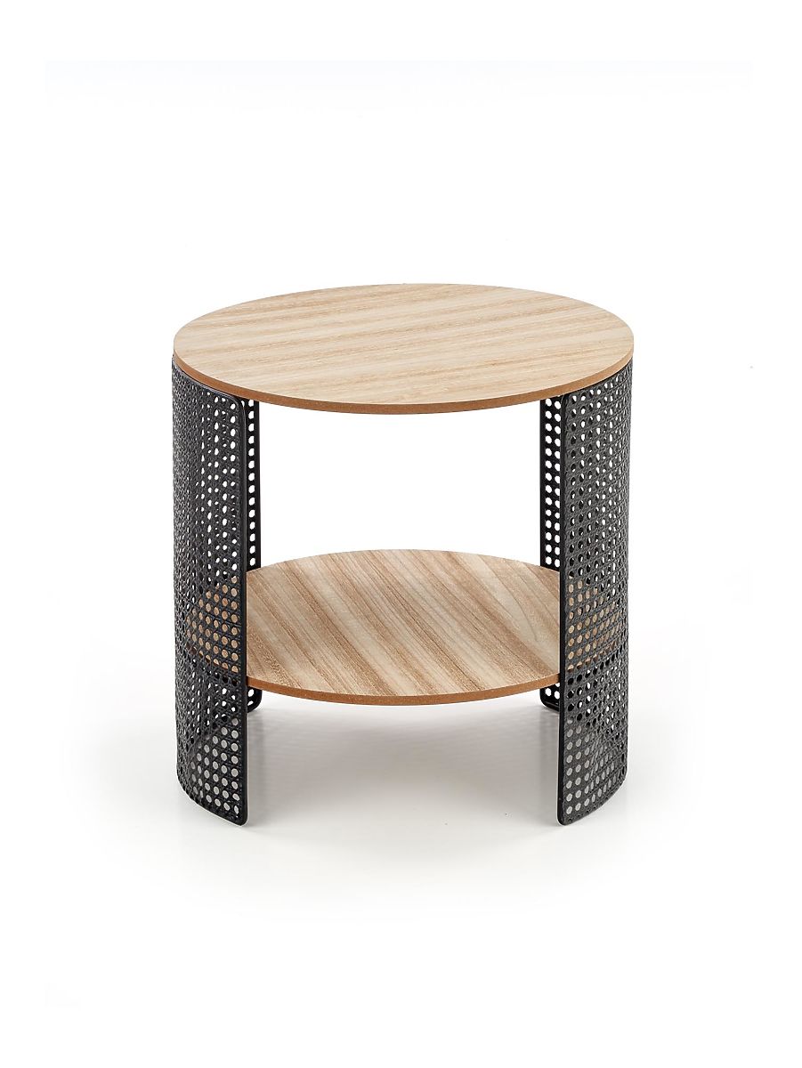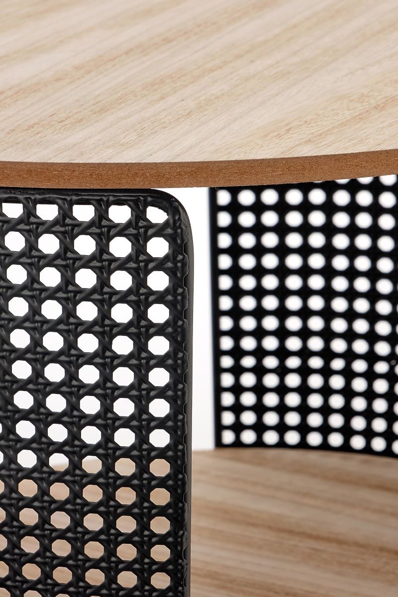 Măsuța de cafea Trafica este o piesă de mobilier modernă, care impresionează prin construcția sa originală și atenția la detalii. Este proiectată pentru iubitorii de soluții practice, dar și estetic elaborate, care adaugă un caracter personal interiorului. Elementul dominant al mesei sunt picioarele din oțel cu acoperire prin pulverizare, a căror textură neobișnuită cu perforații fine creează un efect vizual puternic. Aceste detalii conferă mesei un aer industrial modern și o transformă într-un accesoriu remarcabil pentru camera de zi sau zona de relaxare. Blatul rotund al mesei este realizat din placă MDF acoperită cu furnir natural cu desen vizibil al lemnului, care aduce căldură și o atmosferă primitoare în spațiu. Un beneficiu practic este polița inferioară suplimentară, ideală pentru depozitarea cărților, revistelor sau a micilor obiecte pe care doriți să le aveți la îndemână în timpul relaxării. Datorită dimensiunilor sale compacte, măsuța de cafea Trafica se potrivește nu doar în camerele de zi, ci și în interioarele mai mici, colțurile de lectură sau spațiile moderne de relaxare. Combină funcționalitatea, designul modern și aspectul natural al materialelor într-un ansamblu armonios.