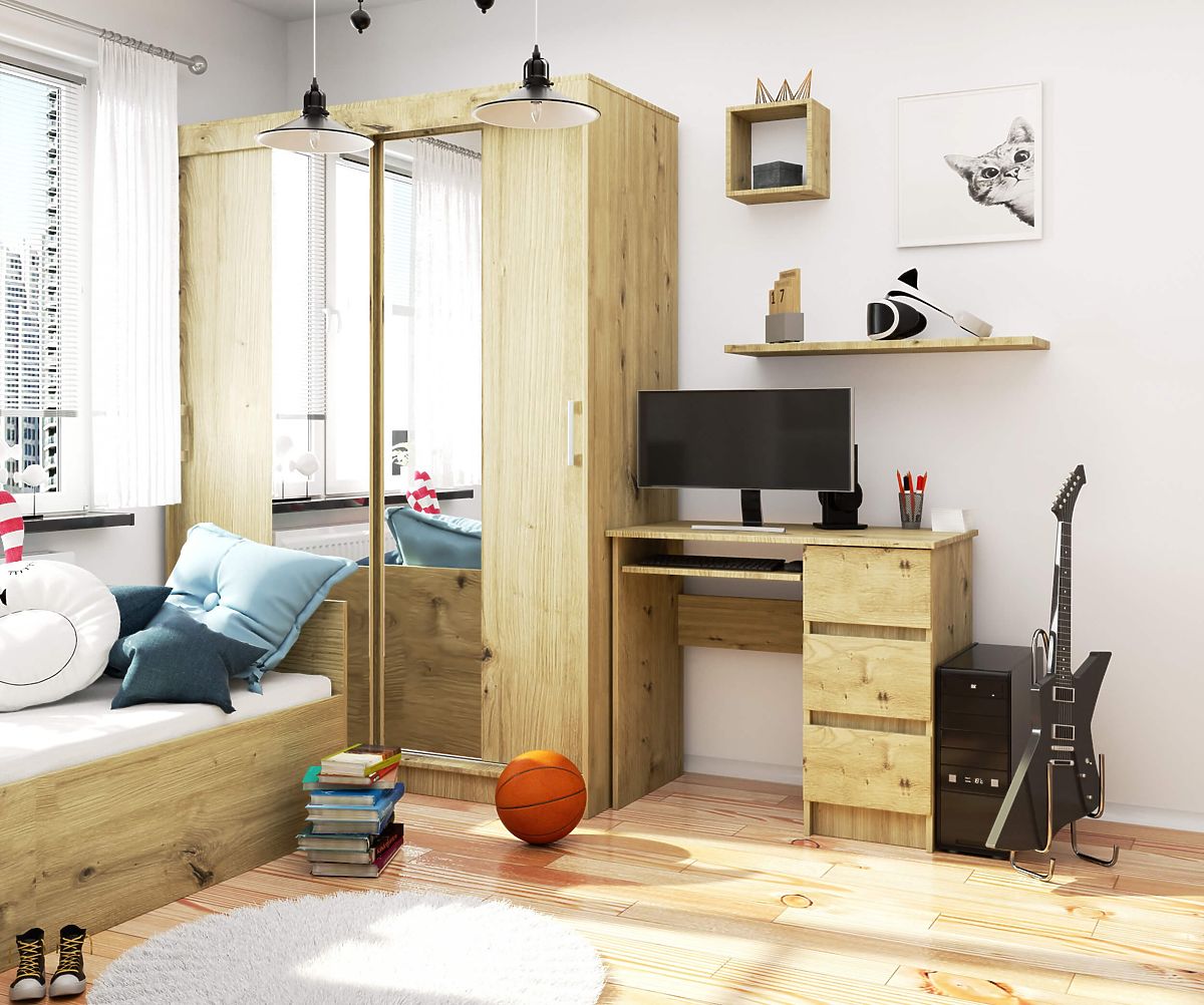 Biroul pentru computer A-6 90 cm dreapta este un produs care combină funcționalitatea, calitatea înaltă și aspectul atemporal. Produsul poate fi combinat liber cu alte elemente de mobilier disponibile în cadrul aceleiași colecții. Birourile pentru computer în culoarea stejarului artisan se potrivesc excelent atât în interioarele amenajate în stil clasic, cât și în aranjamente moderne. Ușor de utilizat și întreținut, va îndeplini fără îndoială așteptările clienților care doresc de la mobilierul ales utilizare practică, simplitate și eleganță.