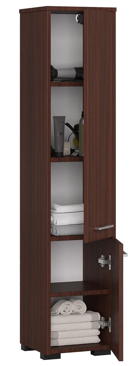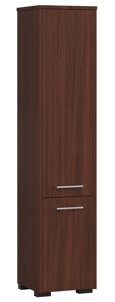 Coloana de baie cu două uși oferită de magazinul nostru este un produs care permite utilizarea corectă a spațiului disponibil și, de asemenea, creșterea valorii sale estetice. Acest lucru se datorează faptului că este optim funcțional și stilat. Acest mobilier este compus din două uși - mai mari sus și mai mici jos. În spatele lor se află un raft practic. Rafturile permit depozitarea diverselor lucruri necesare în baie, cum ar fi prosoape, detergenți, produse de igienă și prafuri de spălat. Această coloană extrem de spațioasă va găzdui cu siguranță accesoriile întregii familii. Nuanța sa frumoasă de wenge merită atenție. Este o culoare clasică care va adăuga camerei eleganța corespunzătoare. Pe uși sunt montate mânere foarte stilate pentru deschidere. Dimensiunile sale permit amplasarea în baie, unde avem la dispoziție puțin spațiu. Datorită formei ergonomice, se adaptează fiecărei camere. Marginile coloanei sunt acoperite cu material ABS, ceea ce garantează că nu vor fi deteriorate nici după o utilizare îndelungată a mobilierului. În plus, placa laminată contribuie la durabilitatea extraordinară a coloanei.