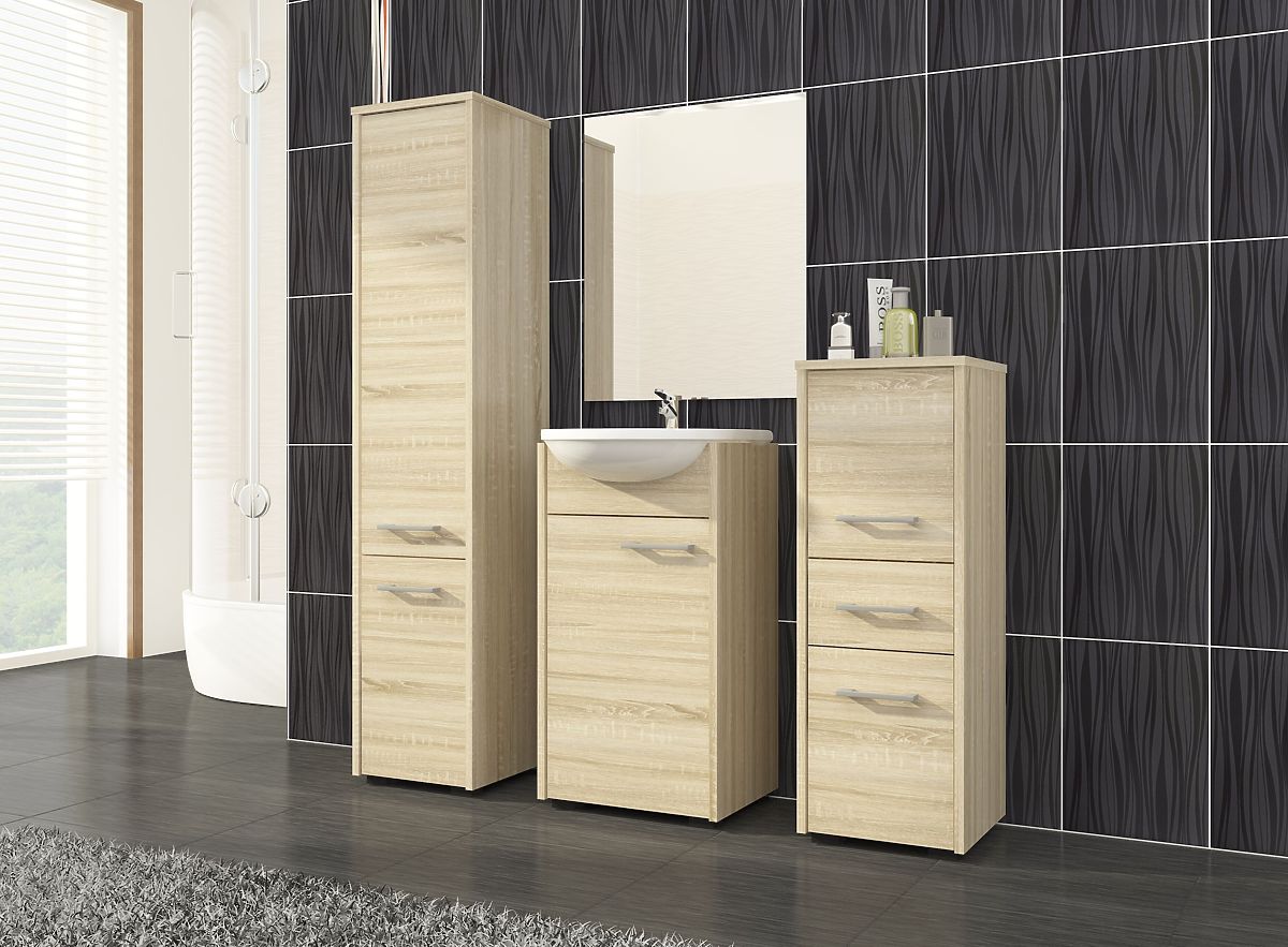DULAP ÎNALT DE BAIE FIN 2 UȘI SONOMA Fabricat din placă laminată de 16 mm rezistentă la abraziune.