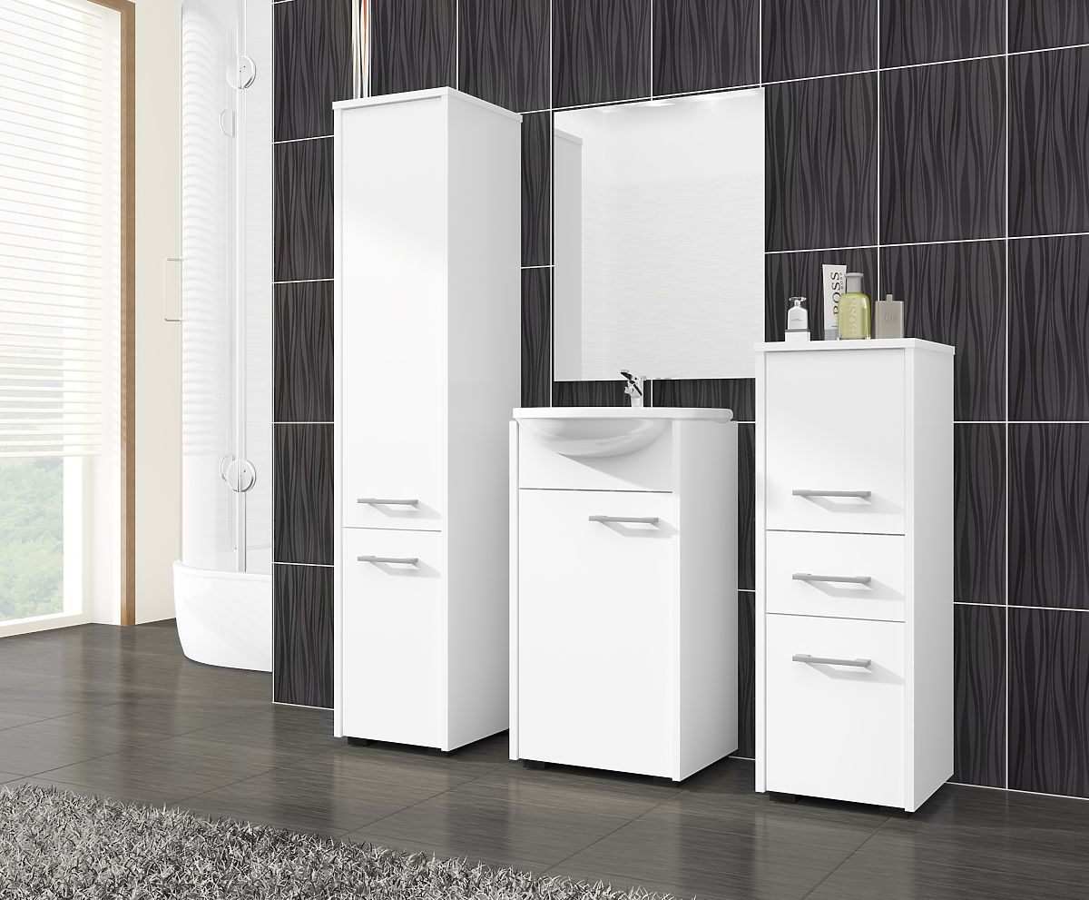 Mobilierul alb se potrivește întotdeauna excelent în băi. De aceea, coloana de baie în această nuanță este o alegere excelentă atât pentru spații mai mici, cât și mai mari. Coloana oferită de noi este un model cu două uși. Are o ușă superioară mai mare și o ușă inferioară mai mică. Pe acestea sunt montate mânere elegante și atrăgătoare pentru deschidere. În spatele acestor uși se află un raft funcțional. În partea superioară a coloanei putem depozita obiecte precum detergenți, lichide sau prosoape. Partea inferioară a dulapului este locul ideal pentru accesorii mici și produse cosmetice. Culoarea albă elegantă luminează orice interior și se potrivește perfect cu culoarea plăcilor sau a altor mobilier. Lățimea și adâncimea optimă a dulapului asigură că nu va împiedica mișcarea în baie și utilizarea echipamentelor de acolo. Construcția dulapului este realizată din placă laminată de calitate superioară. Este astfel rezistentă la deteriorări și utilizare intensă. Marginile acoperite cu material ABS asigură un aspect estetic acestui mobilier pe toată durata utilizării sale.