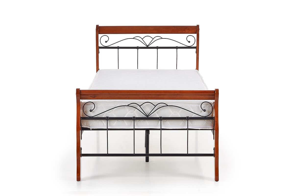 Patul Veronica de la producătorul renumit Halmar este o soluție elegantă și confortabilă pentru un dormitor stilat. Atrage atenția în special prin tăblia și partea de la picioare decorative, care sunt realizate din sârmă groasă, stilizată și conferă patului un caracter romantic și ușor rustic. Stabilitatea și durabilitatea îndelungată sunt asigurate de patru picioare masive din lemn, care formează și colțurile structurii. Finisajul în nuanța de cireș antic subliniază aspectul atemporal și se combină ușor cu interioarele clasice și vintage. Patul Veronica este alegerea ideală pentru cei care caută o combinație de estetică, rezistență și confort. Se potrivește perfect în dormitoarele amenajate în stil romantic, tradițional sau rustic.