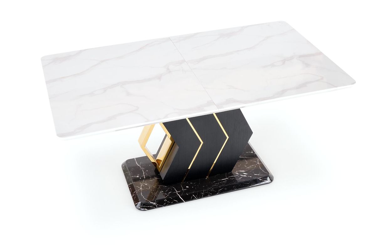 Lukahome.ro » Sufragerie și bucătărie / Mese de sufragerie / Masa extensibilă VINCENZO blat: marmură albă, picior negru/auriu (3p=1buc)