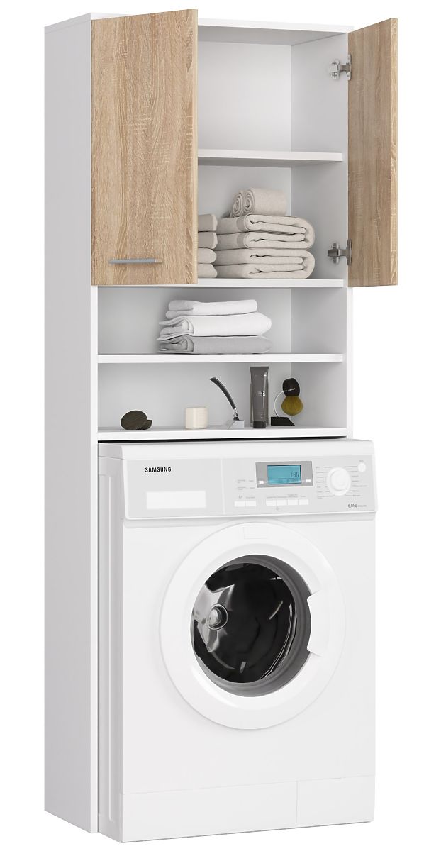 Lukahome.ro » Bathroom & Toilet / Baie dulapuri / RAFT DE BAIE FIN CU DOUĂ UȘI PENTRU MAȘINA DE SPĂLAT ALB / SONOMA