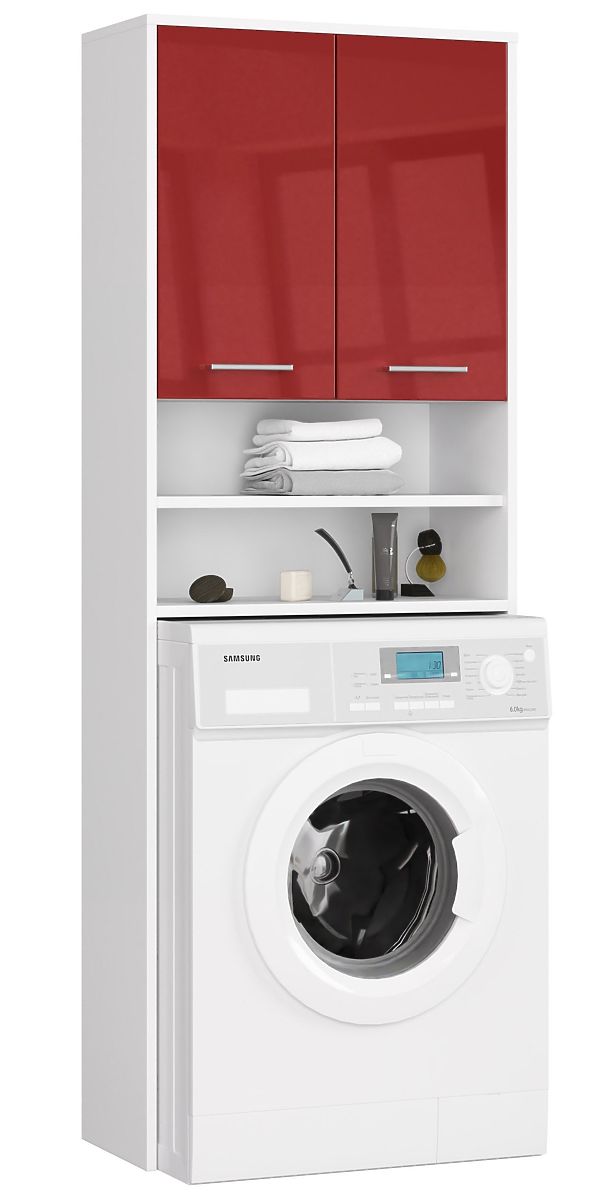 Lukahome.ro » Bathroom & Toilet / Baie dulapuri / RAFT DE BAIE FIN DEASUPRA MAȘINII DE SPĂLAT ALB / ROȘU LUCIOAS