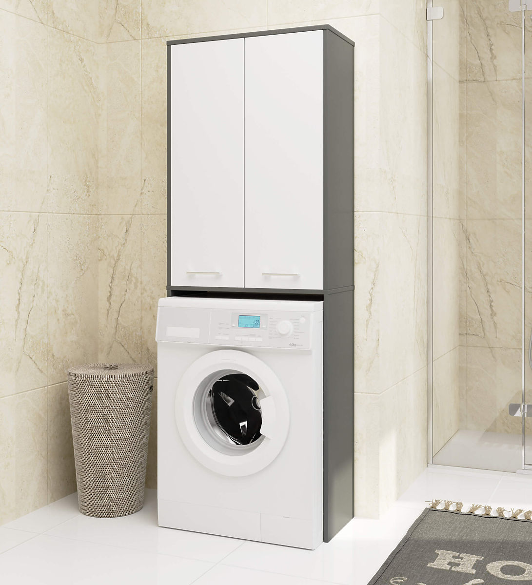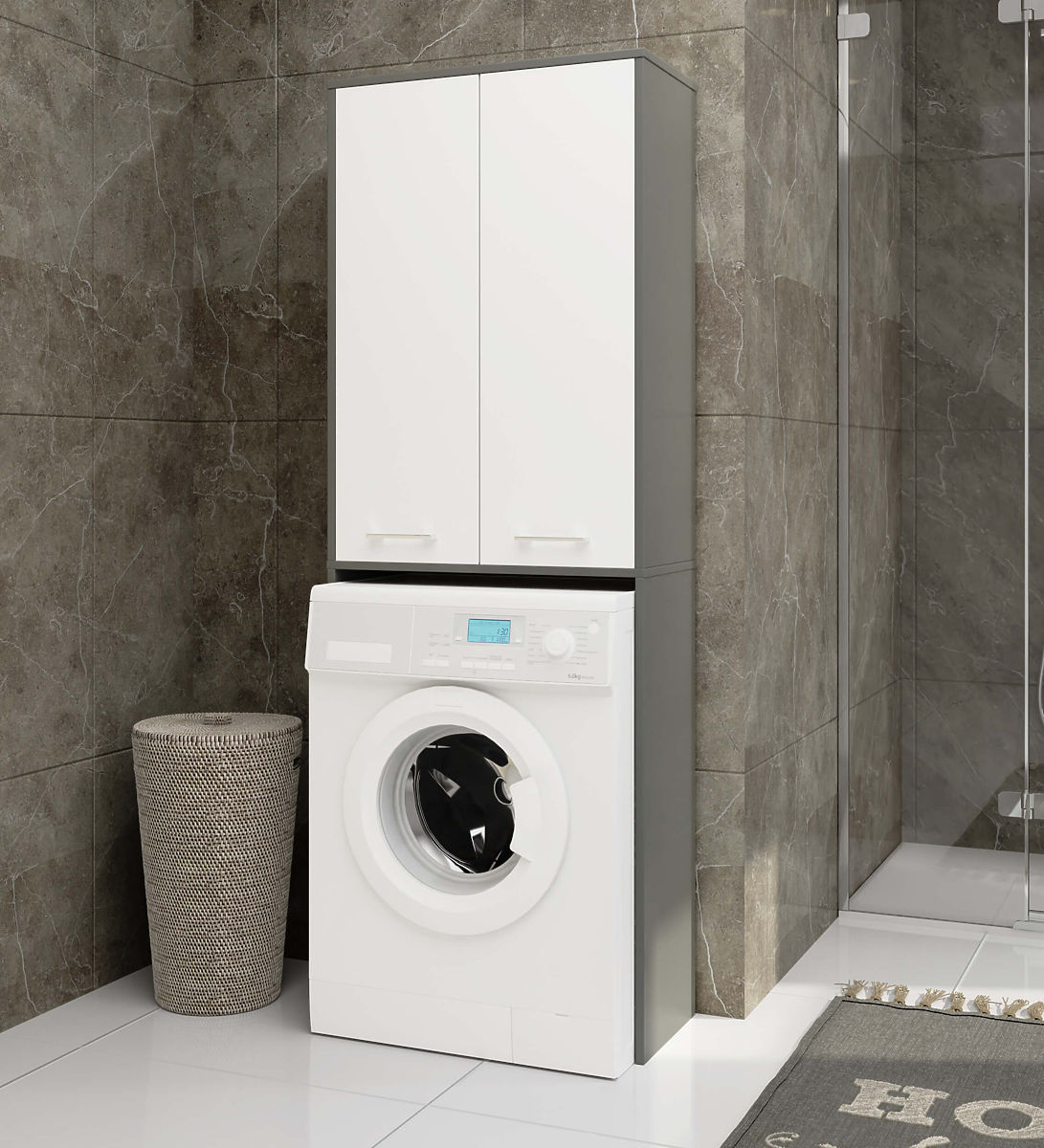 Dulap de baie deasupra mașinii de spălat, gri grafit cu fronturi albe. .. mai mult
