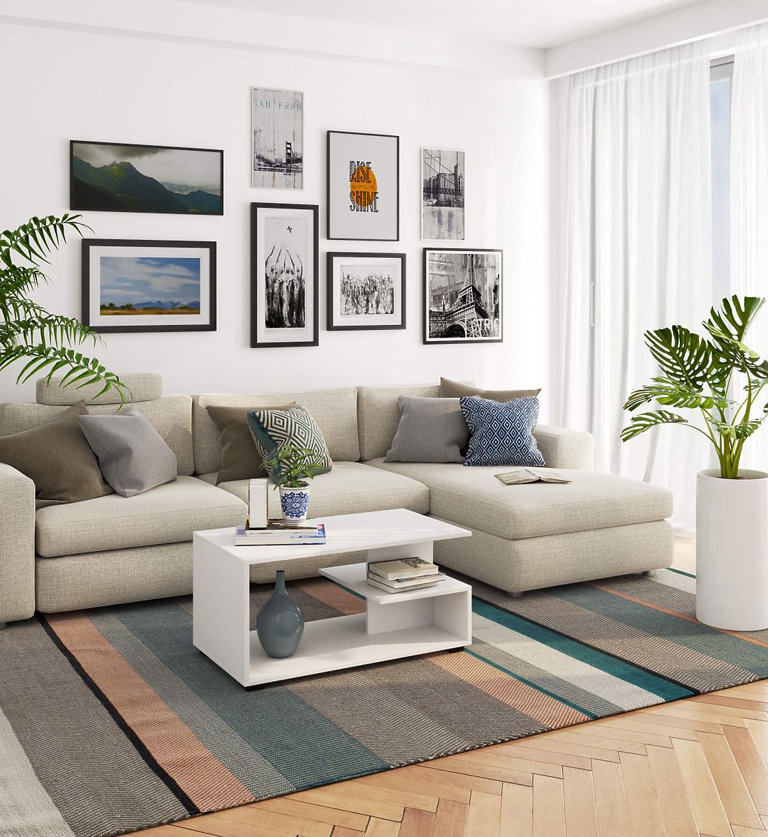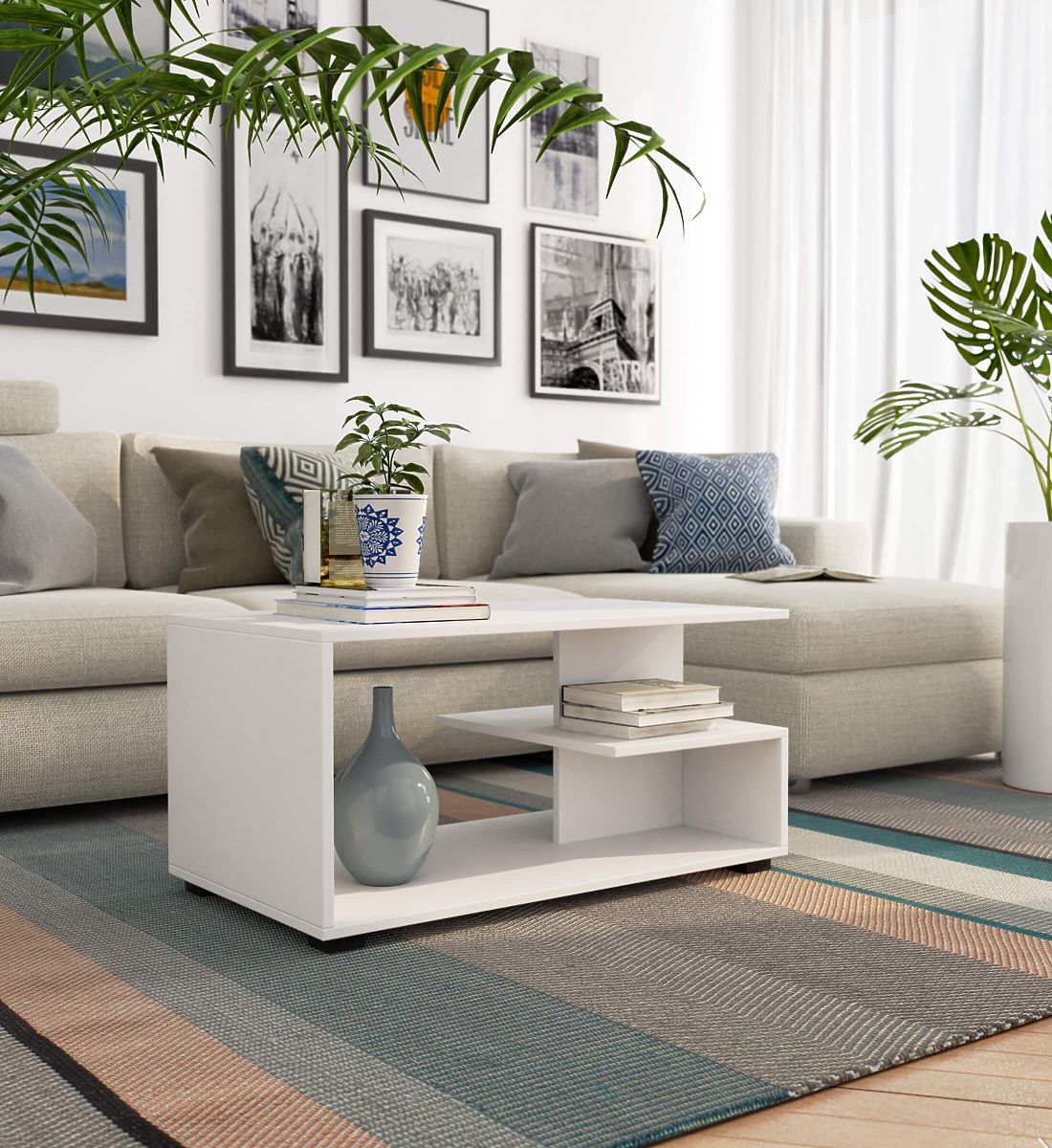 Masă de cafea albă, simplă și clasică, din placă laminată rezistentă. .. mai mult