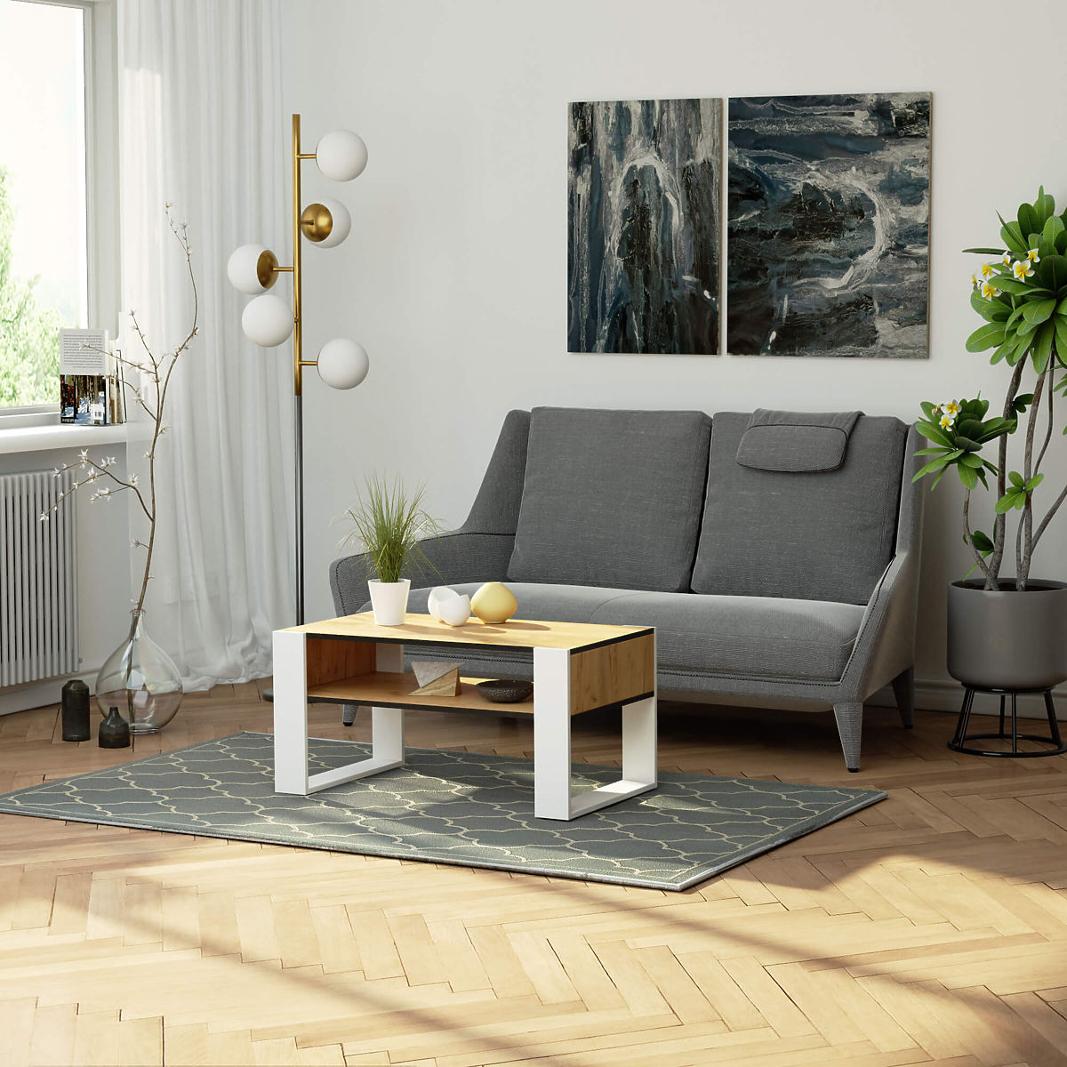 Masă de cafea Domi stejar craft cu picioare albe, versatilă și estetică. .. mai mult
