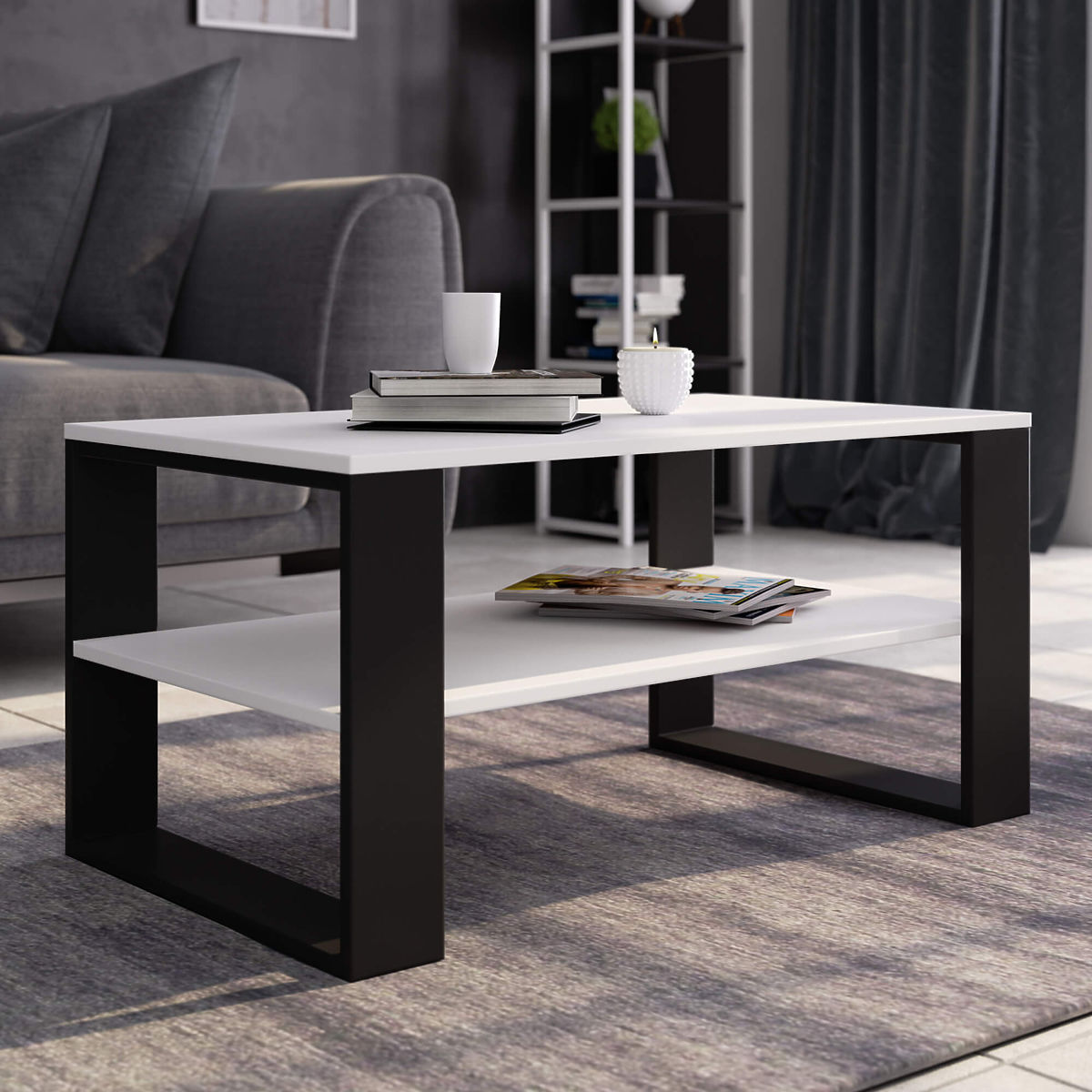 Masă de cafea Alex albă cu picioare negre, stil modern și funcționalitate. .. mai mult