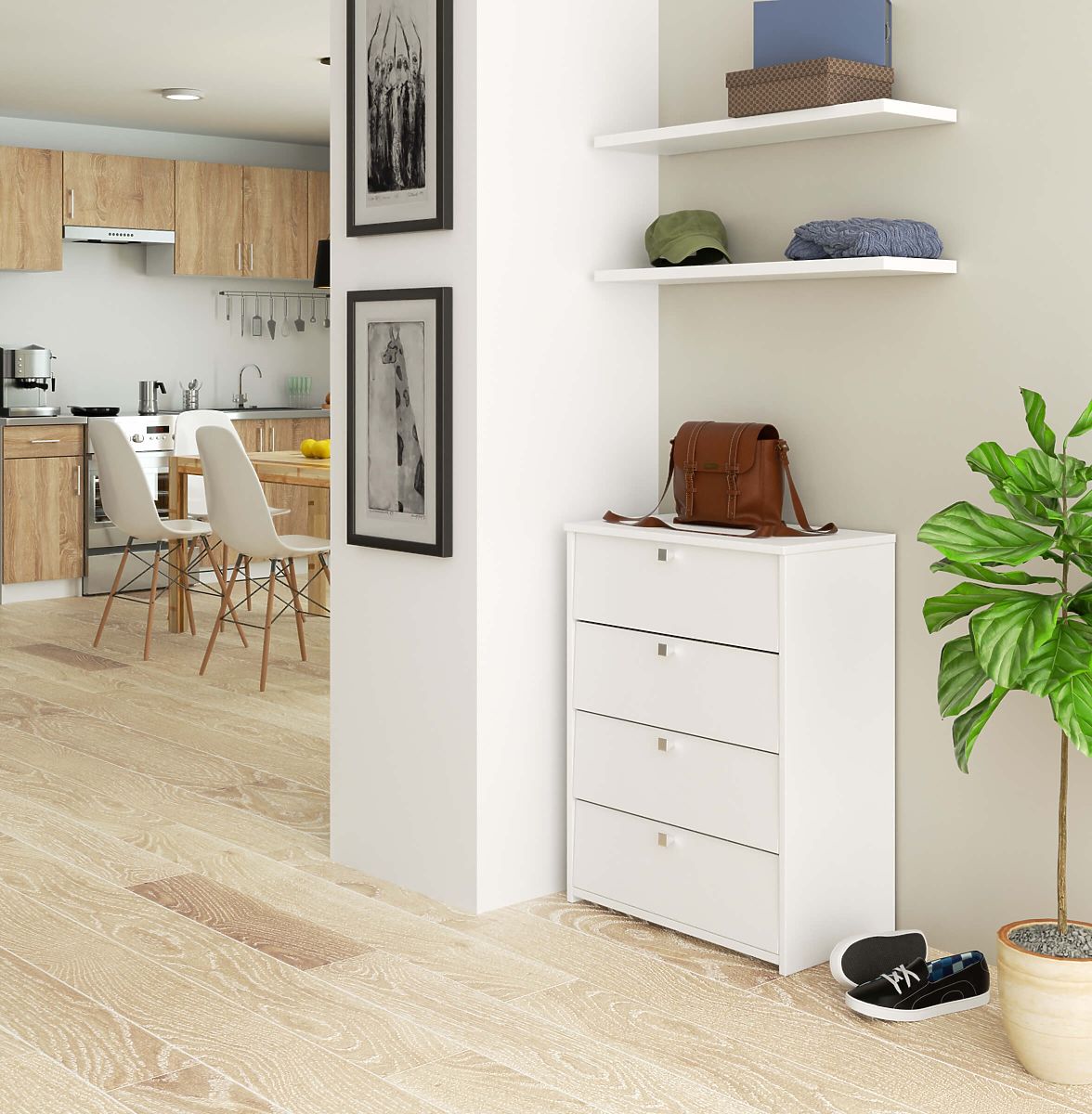 Dulap alb pentru pantofi cu 4 uși rabatabile și 4 rafturi interioare. .. mai mult