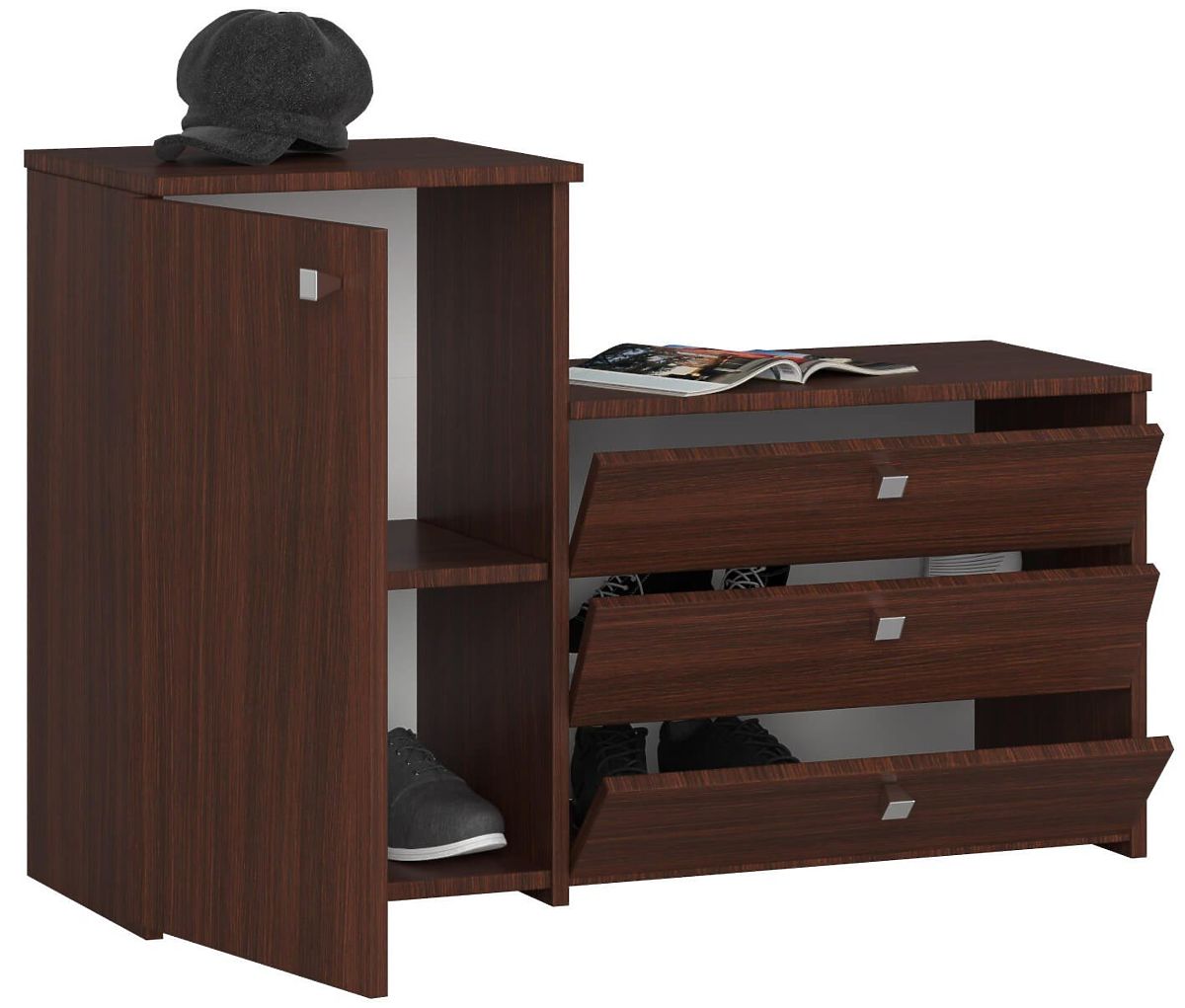 Lukahome.ro » Mobilier / Rafturi pentru pantofi / Dulap pentru pantofi S16 cu comodă, 3 uși rabatabile - wenge