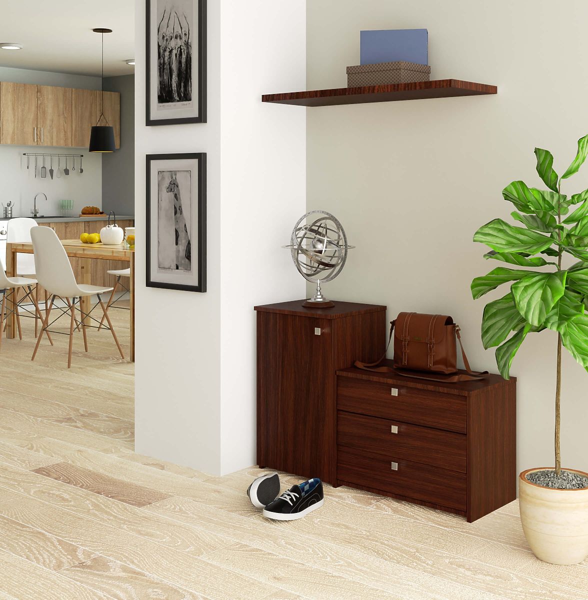 SET DE MOBILIER PENTRU HOL WENGE Dulapul pentru pantofi combinat cu comodă asigură funcționalitate și economie de spațiu.