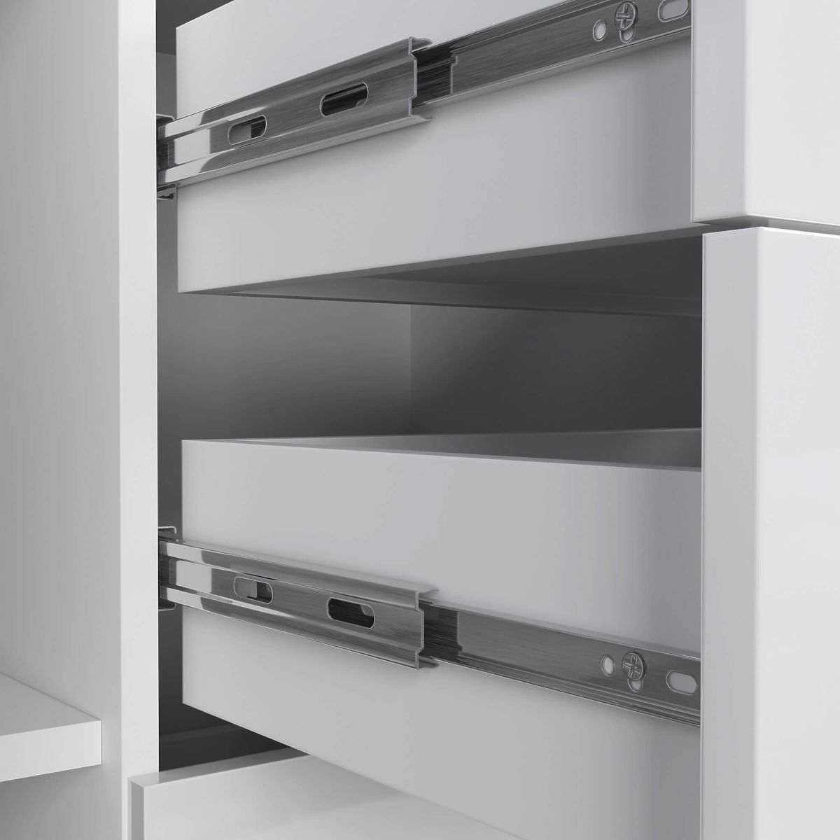 - Sertarele se mișcă pe ghidaje metalice cu bile
