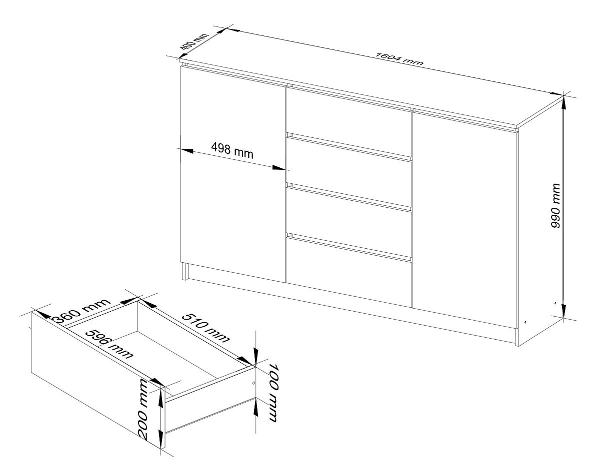 COMODĂ K160 2 UȘI 4 SERTARE