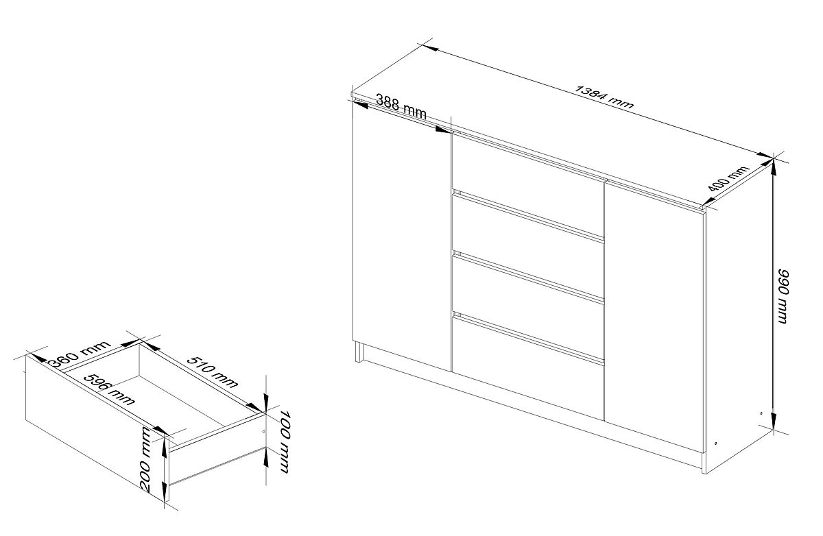 COMODĂ K140 2 UȘI 4 SERTARE
