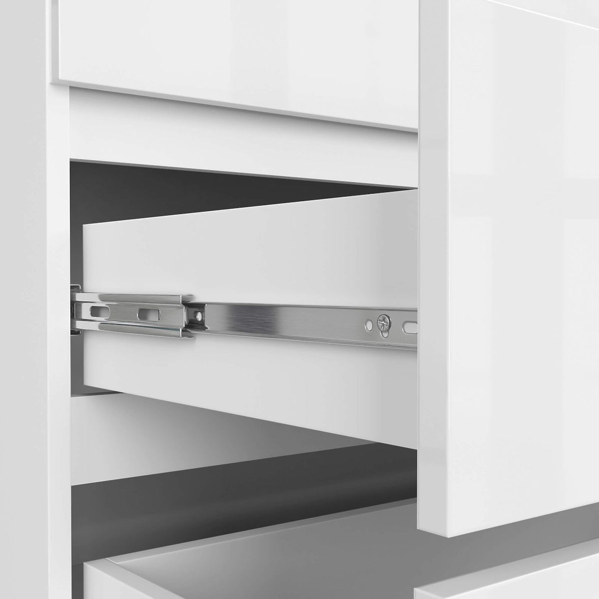 - Sertarele se mișcă pe ghidaje metalice cu bile