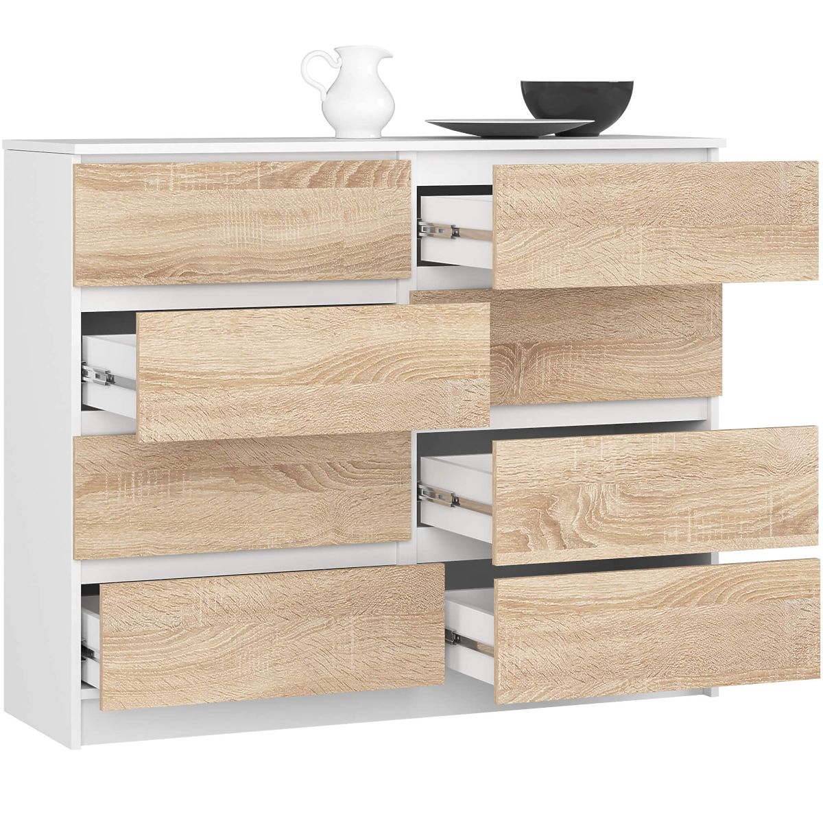 Comodă albă cu 8 sertare și finisaj Stejar Sonoma. .. mai mult