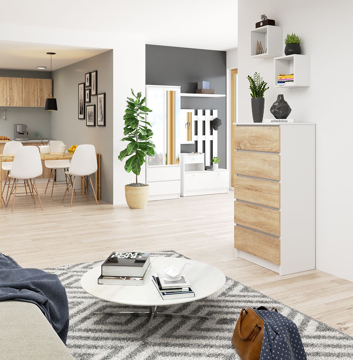Comodă albă cu 5 sertare și fronturi Sonoma. .. mai mult