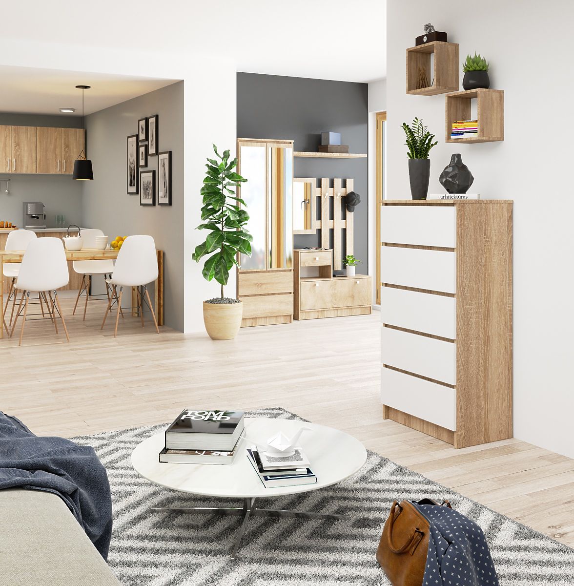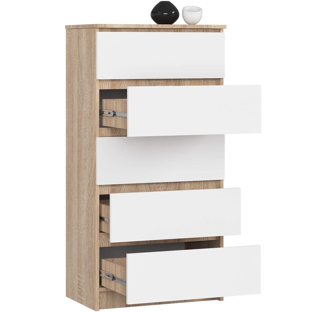 Comodă cu 5 sertare, stejar Sonoma și fronturi albe. .. mai mult