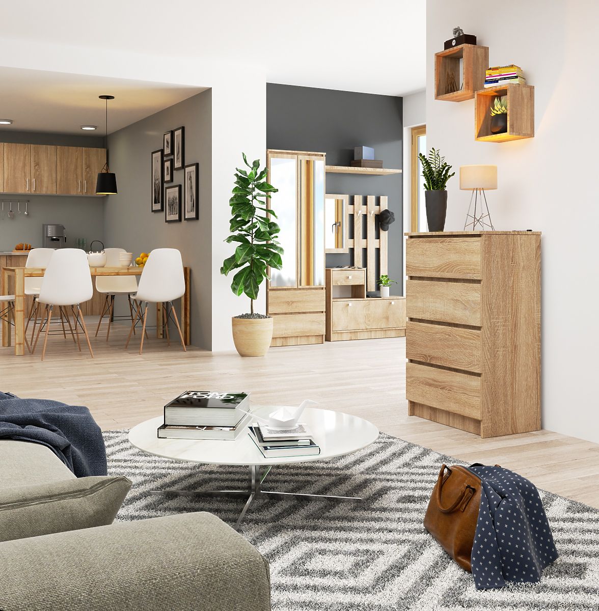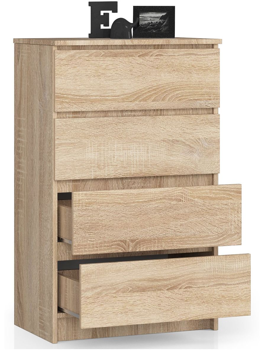 Comodă mică K60 cu patru sertare practice, culoare stejar sonoma. .. mai mult