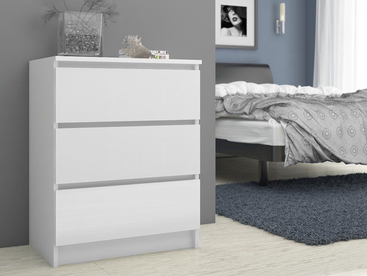 Frumusețea constă în simplitate, lucru de care suntem conștienți, de aceea vă oferim cel mai frumos mobilier de cameră. Una dintre propunerile noastre este o comodă albă de 60cm, care cu siguranță va încânta iubitorii stilului scandinav. Mobilierul alb este foarte popular în ultima vreme - nu e de mirare: combină utilizarea practică, versatilitatea și aspectul atractiv. Comoda albă cu 3 sertare este o propunere care se potrivește perfect în camere de zi, dormitoare, camere pentru copii și oaspeți, săli de mese și multe alte încăperi. Poate fi folosită cu succes și în birou. Cele trei sertare practice pot găzdui cu ușurință toate obiectele necesare. Comoda este fabricată din placă laminată de 16mm, care se caracterizează printr-o rezistență crescută la abraziune. Marginile sunt acoperite cu bandă ABS. Vă recomandăm să profitați de oferta noastră.