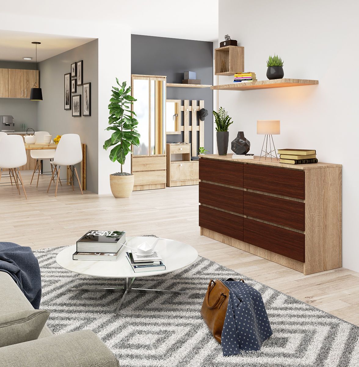Comoda este un element practic de mobilier, care se potrivește foarte bine atât în camerele de zi, cât și în alte spații de locuit, precum și în birouri. Este ușor de utilizat zilnic și de întreținut curat, mobilierul va îndeplini cu siguranță așteptările clienților care apreciază un bun raport calitate-preț al produselor selectate.