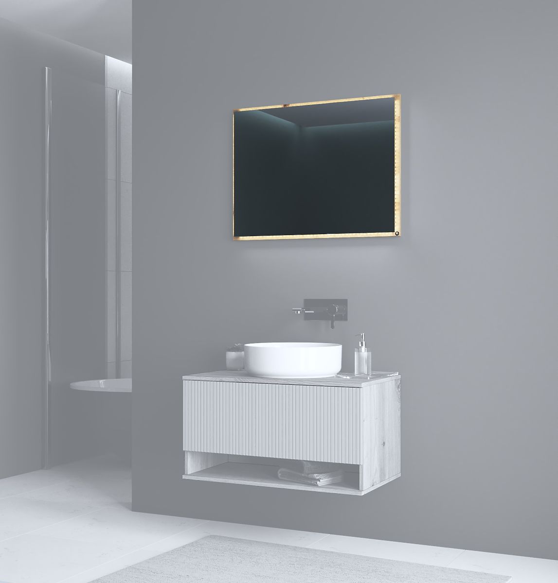 Oglindă modernă Aviola cu iluminare LED și decor stejar artisan. .. mai mult