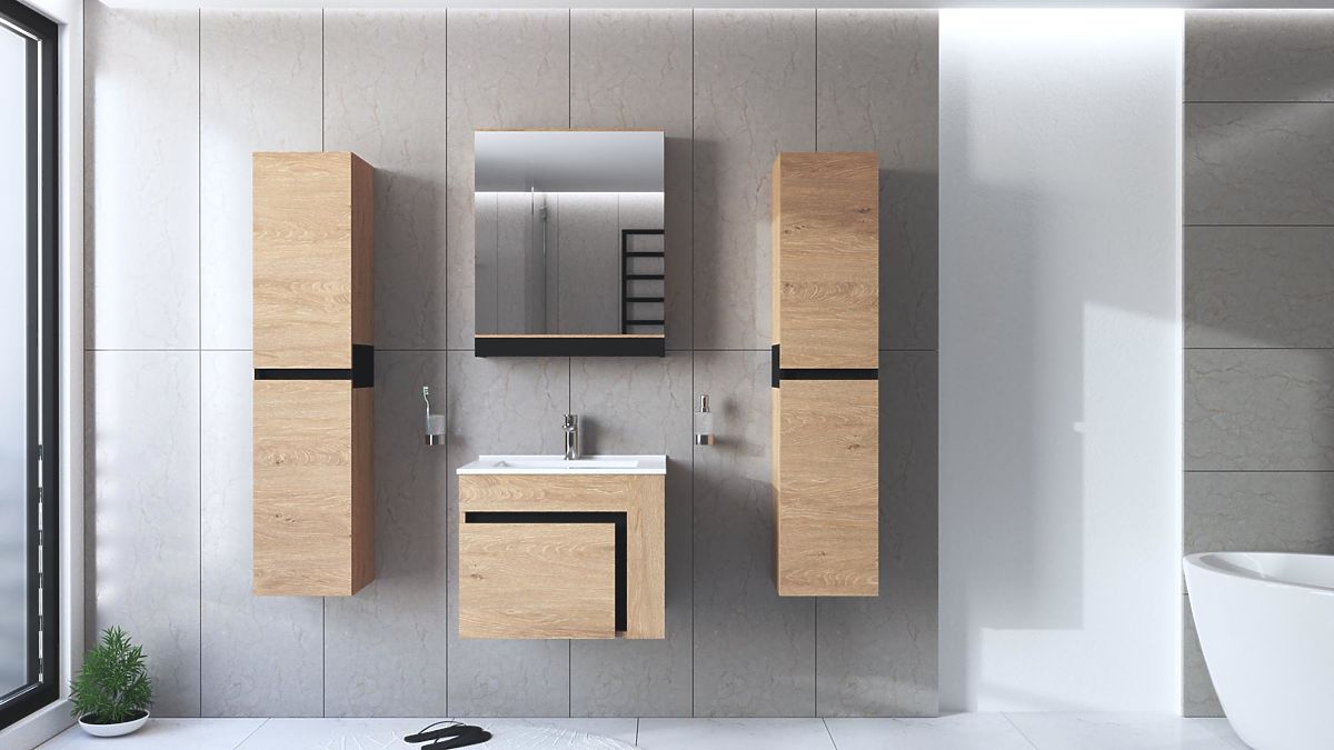Dulapul sub chiuvetă DUESA este alegerea ideală pentru orice baie modernă, unde se pune accent pe funcționalitate, ordine și design natural. Datorită dimensiunilor sale compacte, se potrivește perfect sub majoritatea chiuvetelor cu lățimea de 60 cm și oferă un spațiu de depozitare practic pentru nevoile zilnice. Organizarea interioară combină un sertar și rafturi deschise, care permit depozitarea ordonată a cosmeticelor, prosoapelor sau produselor de curățenie. Dulapul este realizat din lemn de calitate cu decor de stejar auriu, care conferă băii un aspect plăcut, natural și asigură o durată lungă de viață chiar și în utilizarea zilnică.