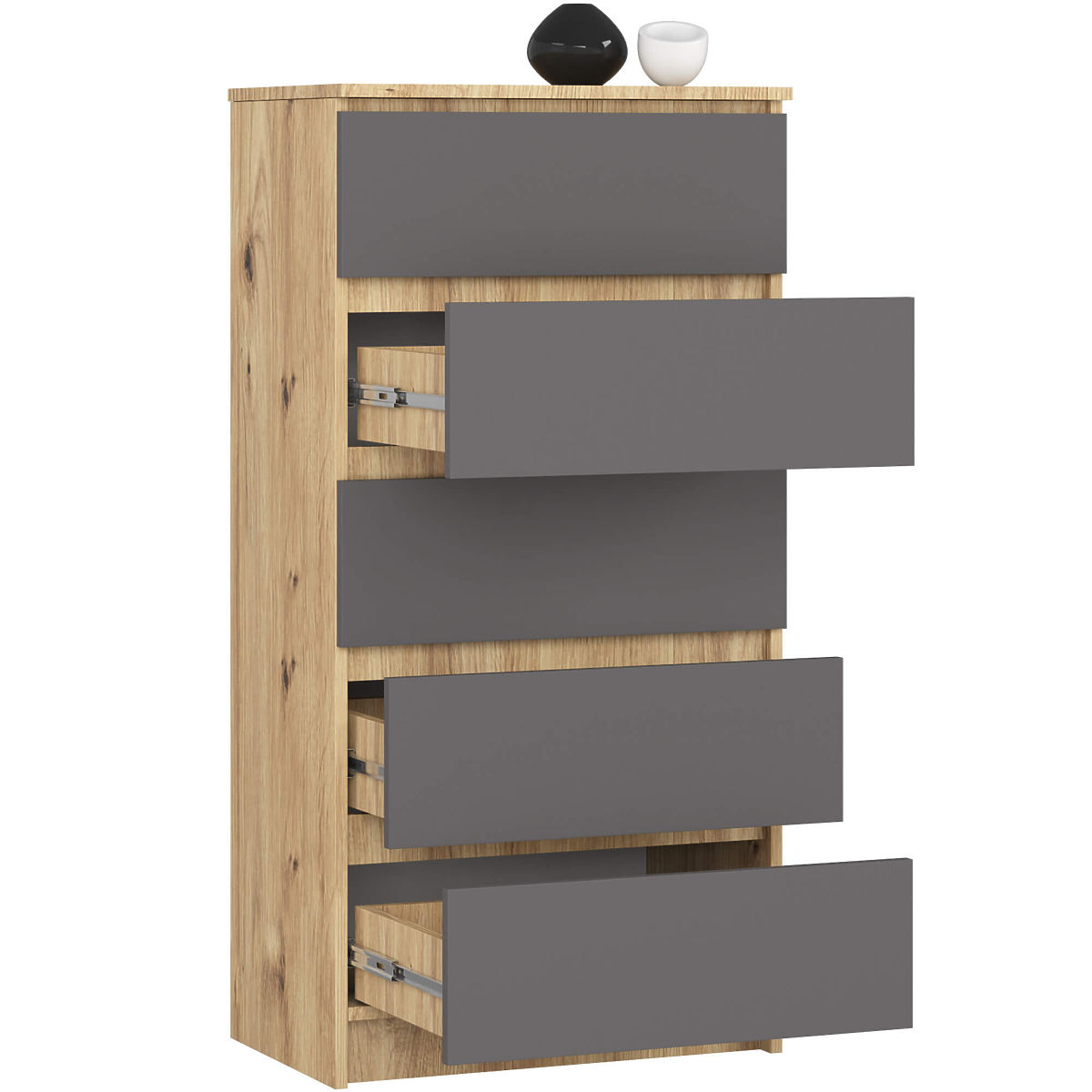 Comodă cu 5 sertare, din placă laminată, Stejar Artisan și Gri Grafit. .. mai mult