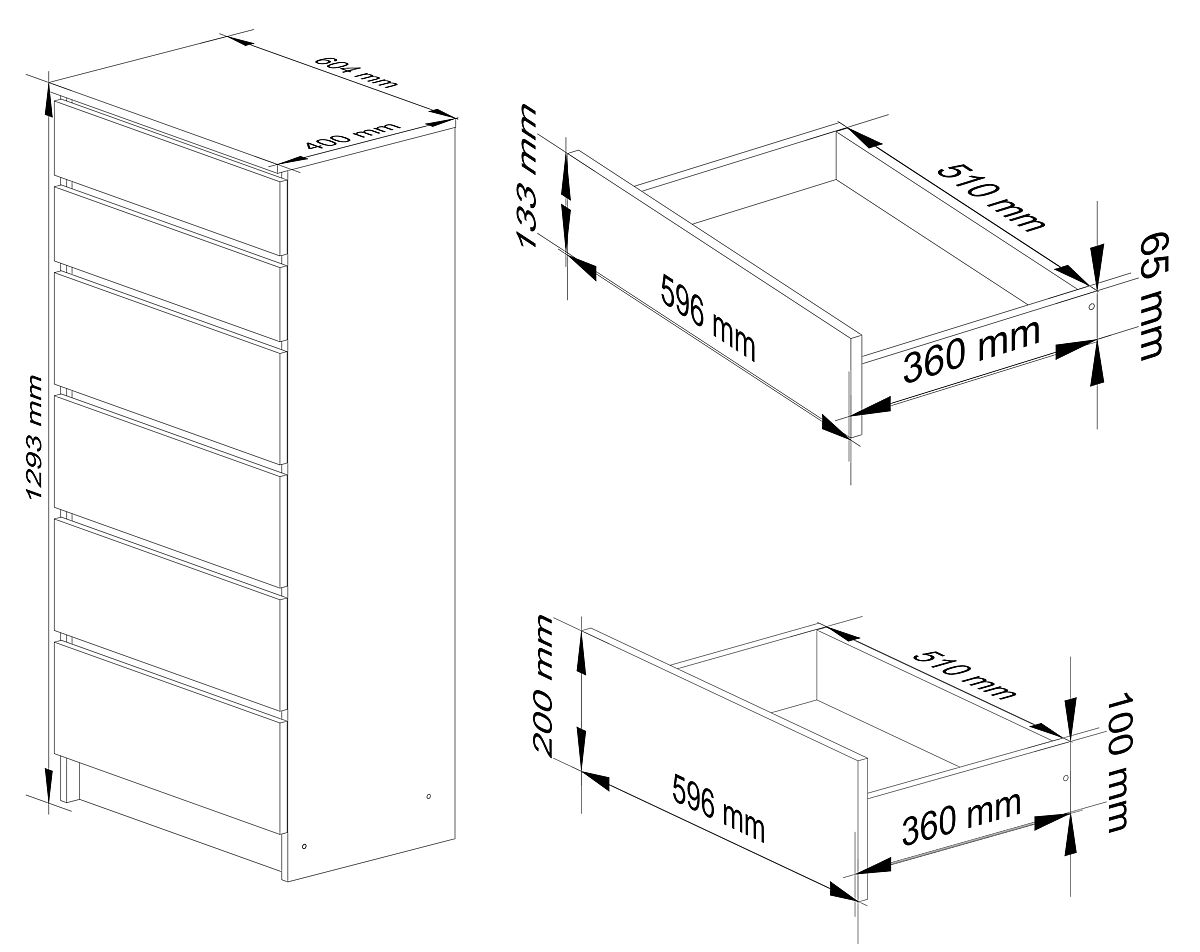 COMODĂ K60 6 SERTARE Fabricată din placă laminată de 16mm rezistentă la abraziune.