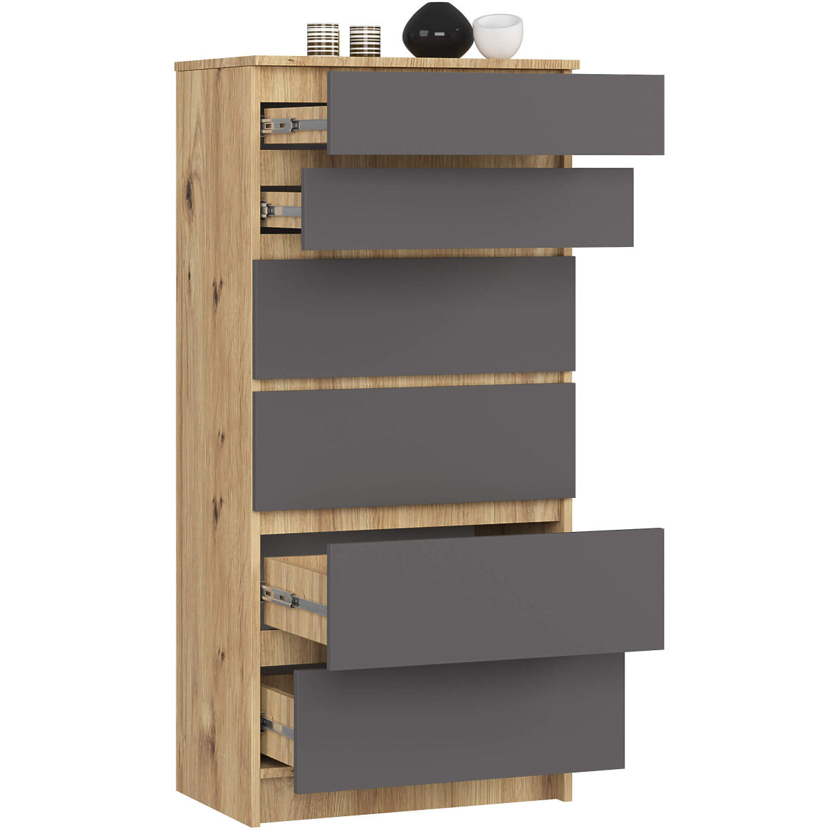 Comodă cu 6 sertare, Stejar Artisan și Gri Grafit, pentru asamblare proprie. .. mai mult