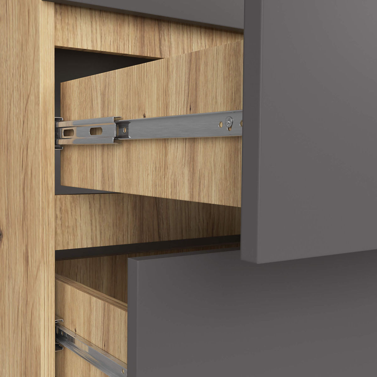 - Sertarele se mișcă pe șine metalice cu role- Margini acoperite cu ABS pentru o protecție ridicată împotriva deteriorării