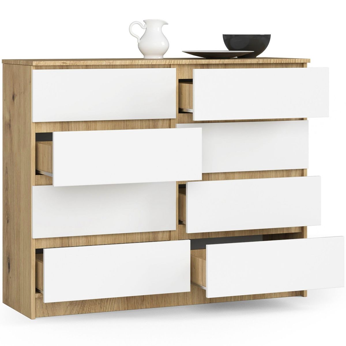 Comodă cu 8 sertare, din stejar Artisan și alb, pentru asamblare proprie. .. mai mult