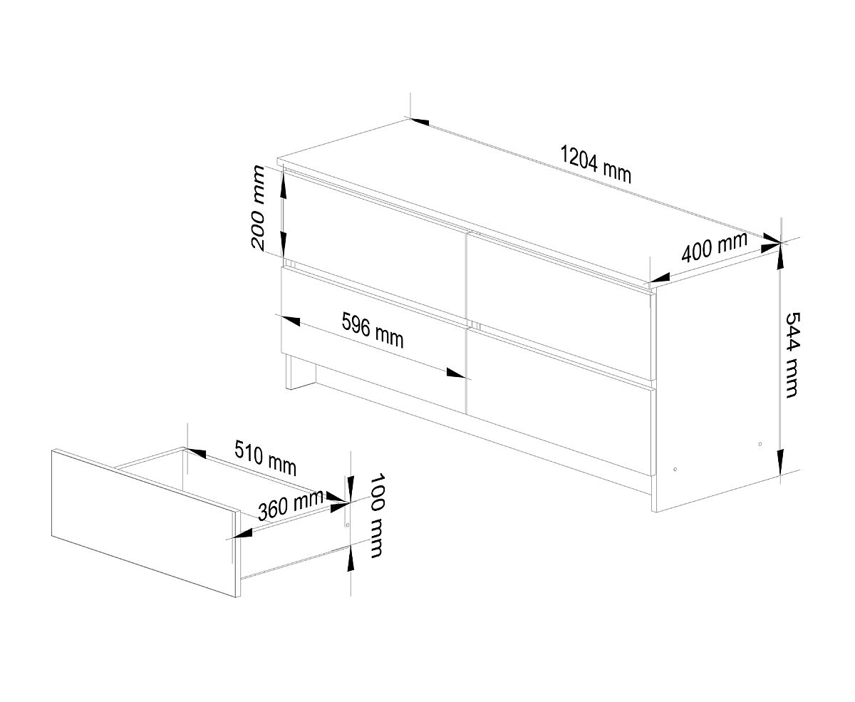 - Comodă fabricată din placă laminată rezistentă la abraziune