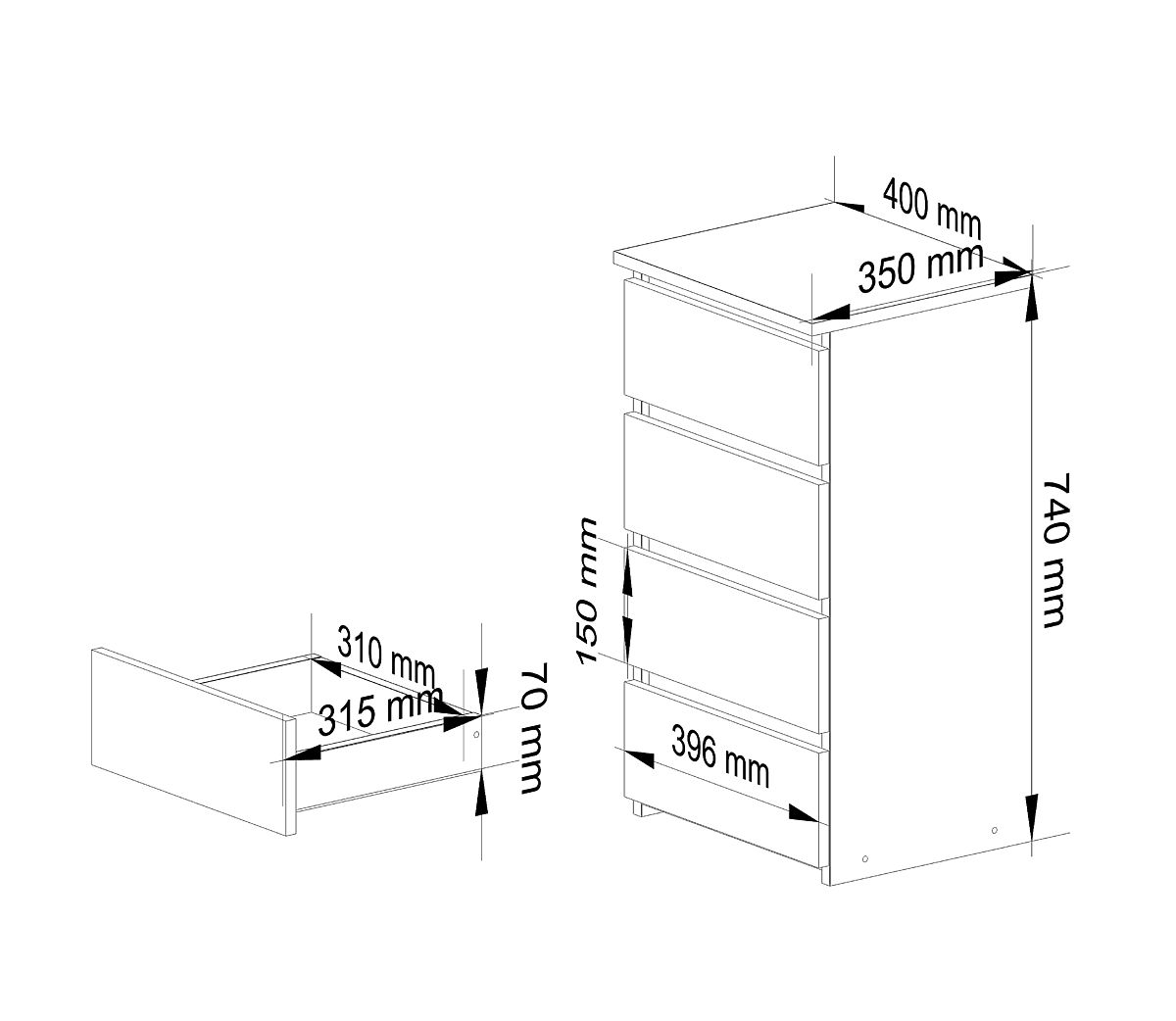 - capacitate - 4 sertare pentru o organizare flexibilă,