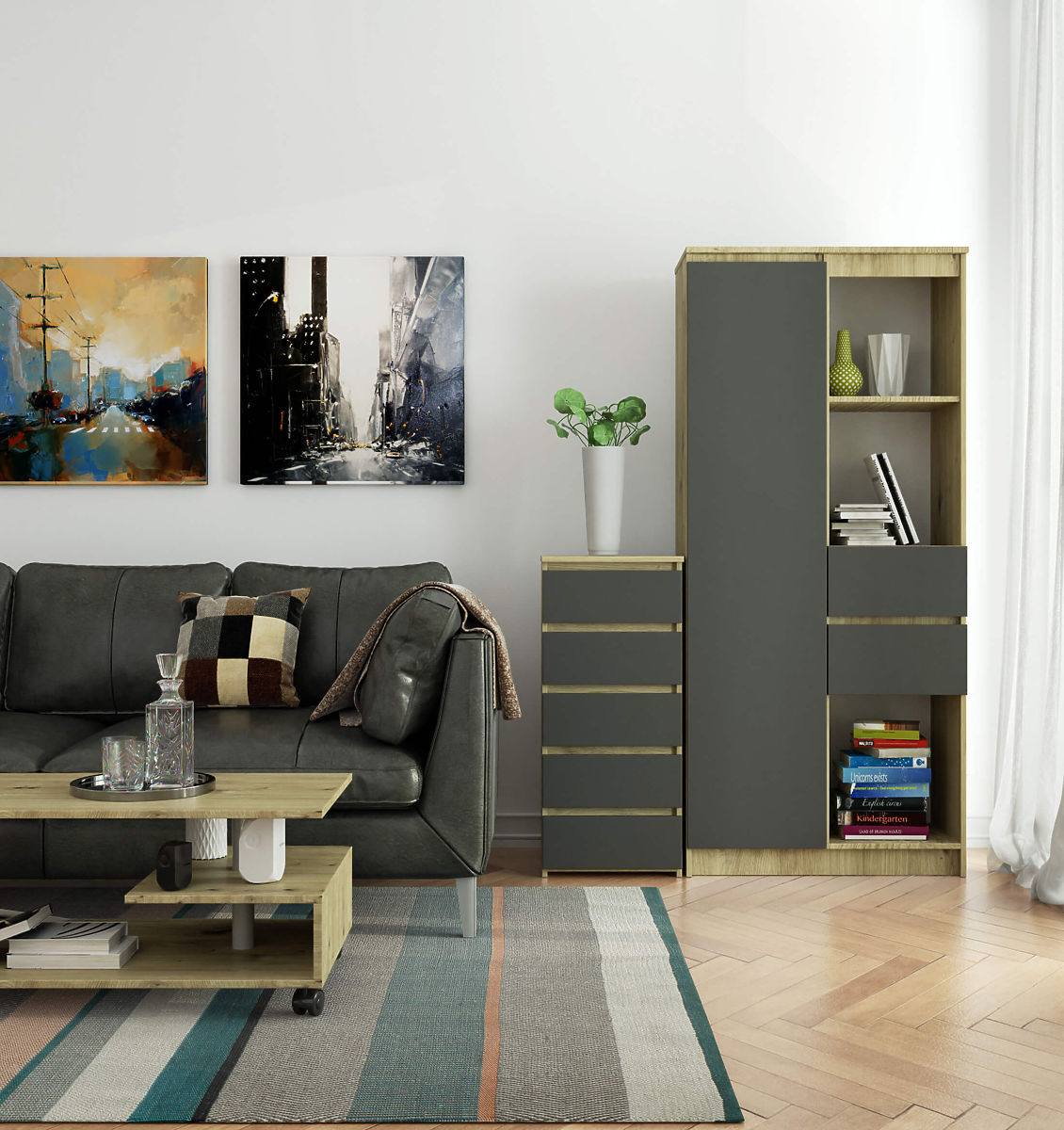 Comodele sunt un tip popular de mobilier, care se amplasează lângă pat. Pe suprafața sa se află adesea o lampă, în timp ce în interior sunt obiecte care facilitează odihna și somnul. Persoanele care caută o comodă elegantă ar trebui să acorde atenție comodei CL5 de 40 cm în culoarea stejarului artisan cu fețe gri. Se va evidenția frumos în orice dormitor. Poate fi amplasată și în camera copiilor.