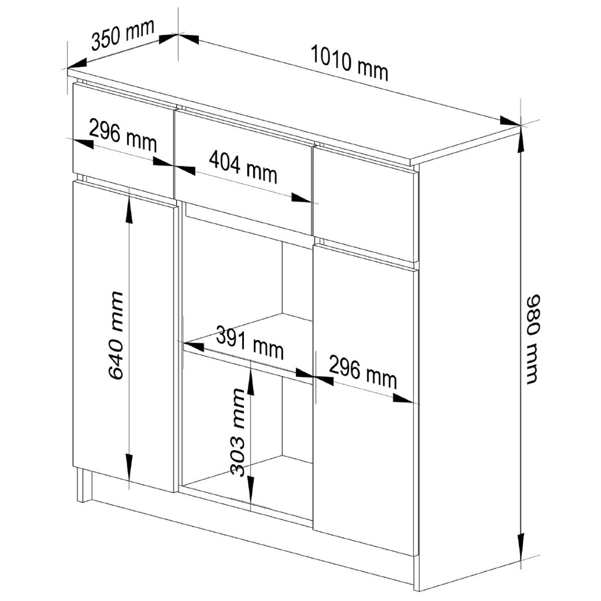 COMODĂ K100 Fabricată din placă laminată de 16mm rezistentă la uzură.