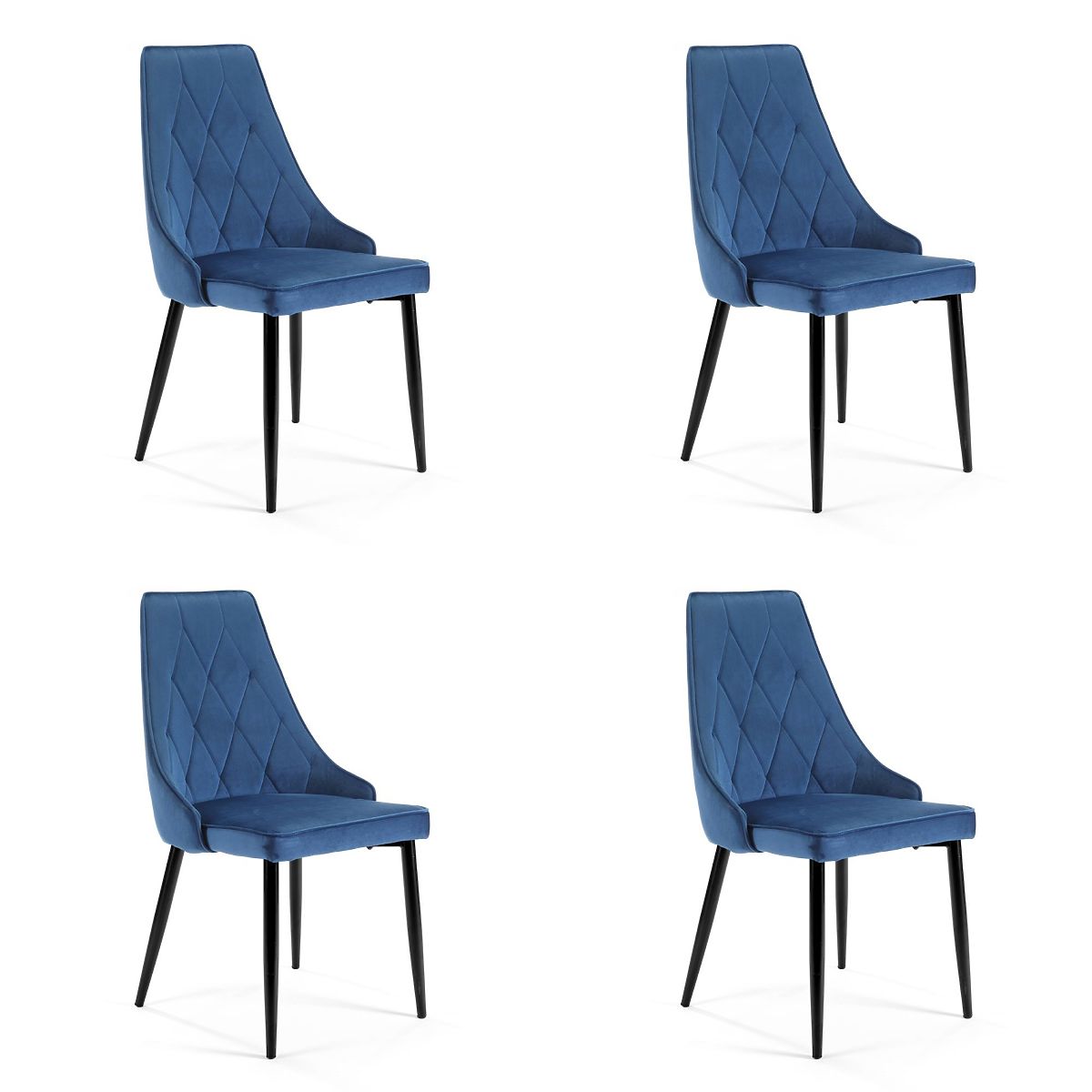 Scaune moderne SJ.054 cu tapițerie de catifea albastră și picioare metalice negre. .. mai mult