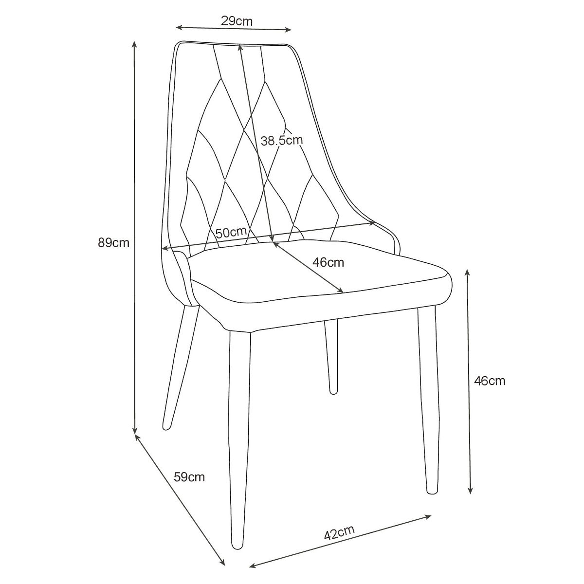Scaune glamour 148 cu cusături și picioare metalice negre.