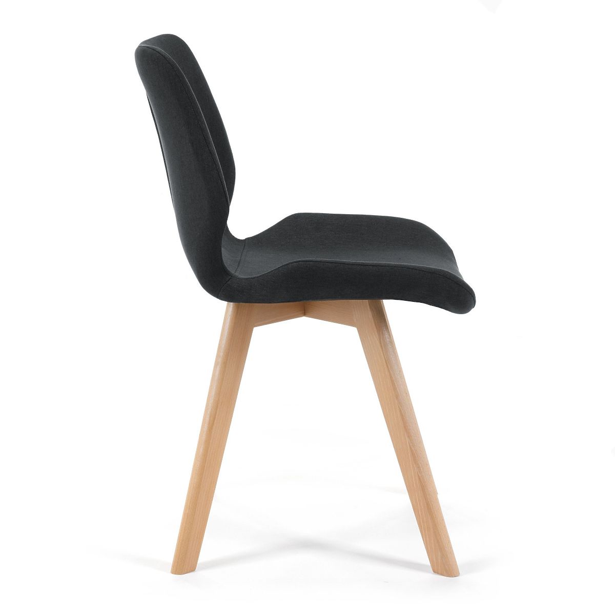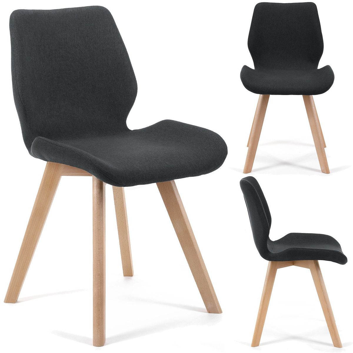 Scaun scandinav negru cu picioare din lemn și tapițerie textilă. .. mai mult