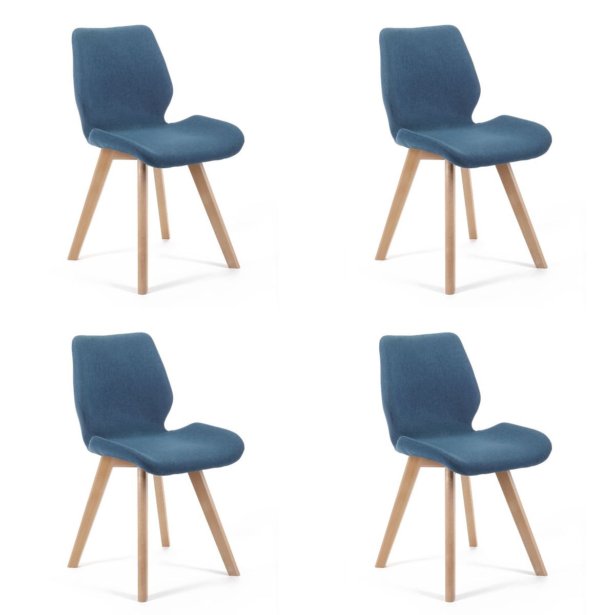Scaun elegant de culoare albastră. Picioarele din lemn conferă acestui produs un aspect modern și stilat. Datorită tapițeriei din material textil, scaunul este foarte frumos și confortabil. Se potrivește în living, birou, dormitor, sală de așteptare sau recepție. Scaunele se vând în seturi - 4 bucăți într-un pachet.