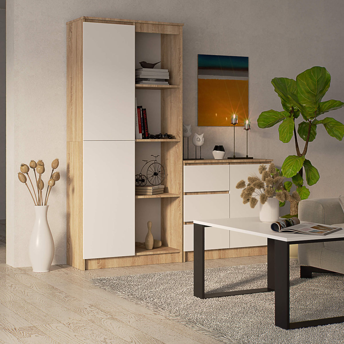 Raft de birou cu 8 rafturi și o ușă, culoare stejar Sonoma și alb. .. mai mult