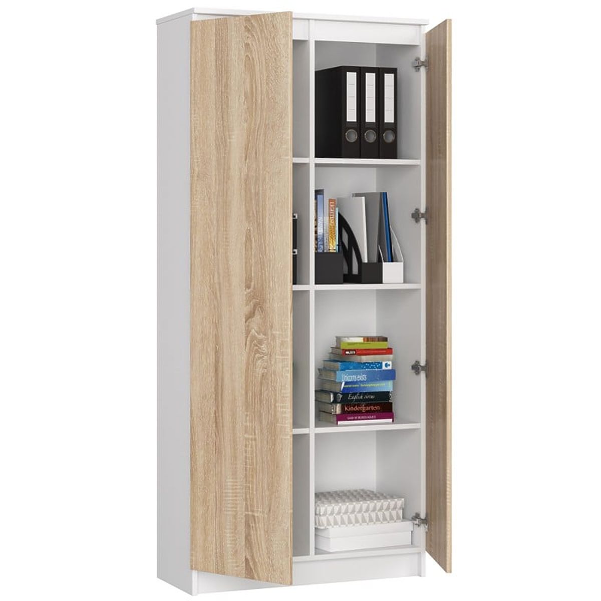 Bibliotecă de birou cu 8 rafturi și 2 uși, albă/sonoma. .. mai mult