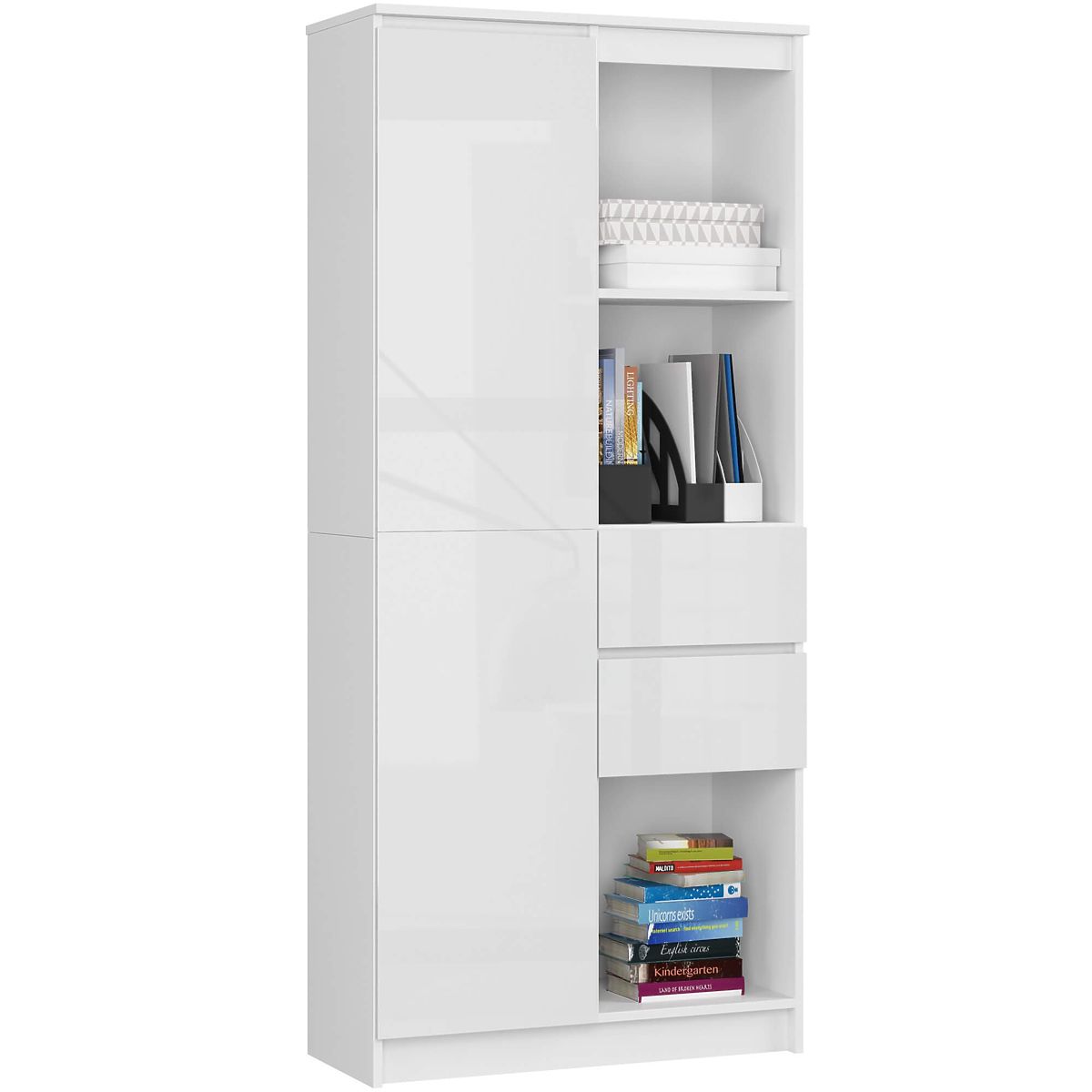 Raft alb de birou din seria CLP R-15 cu suprafețe frontale lucioase albe