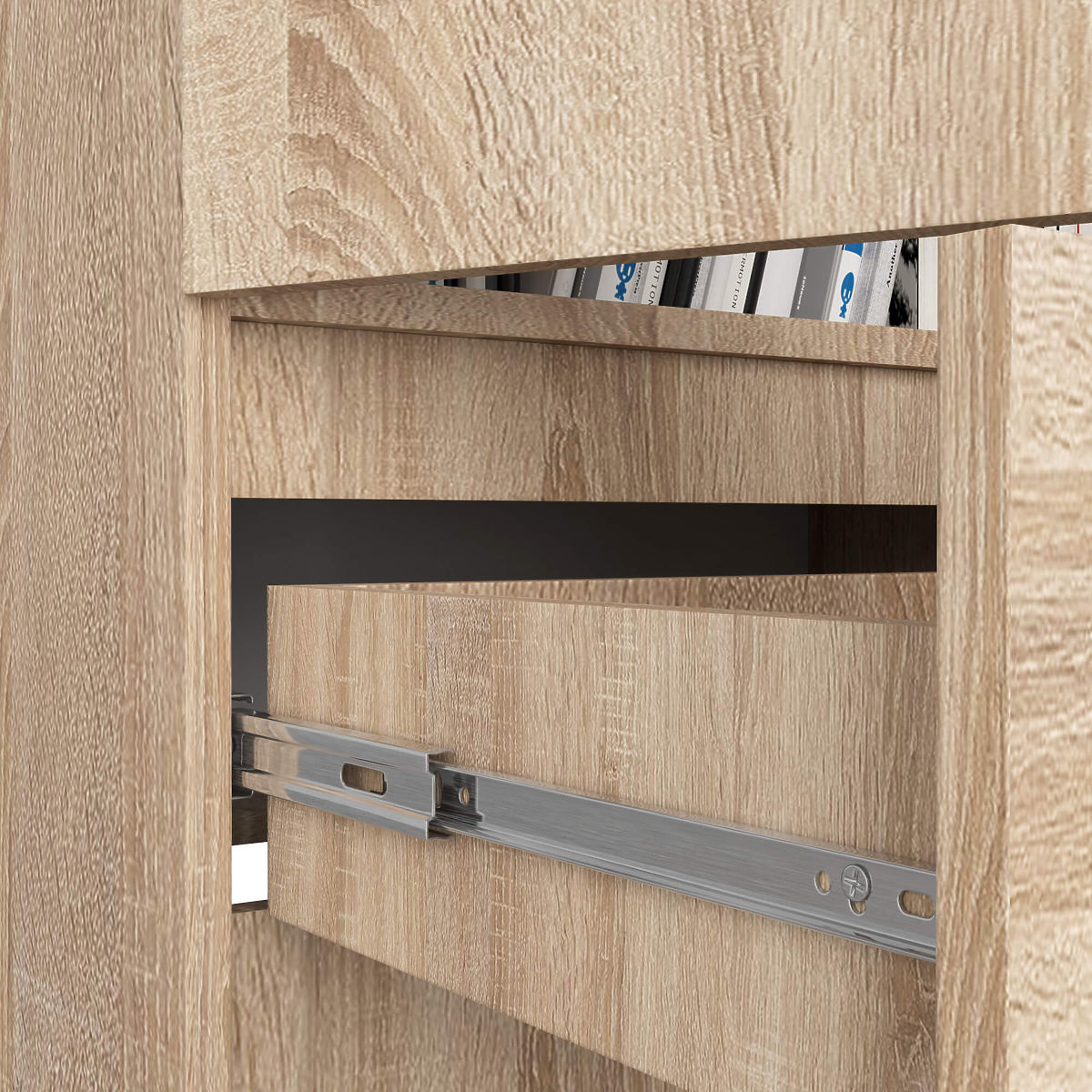 Raft compact cu uși rabatabile și sertar, stejar sonoma. .. mai mult