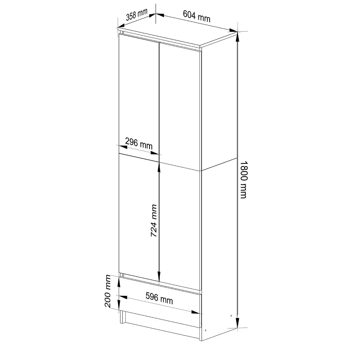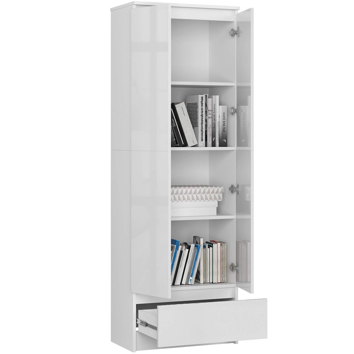 BIBLIOTECĂ ÎNCHISĂ CLP 60cm 1 SERTAR 2 UȘI Corp - Alb | Fațade - Alb Lucios
